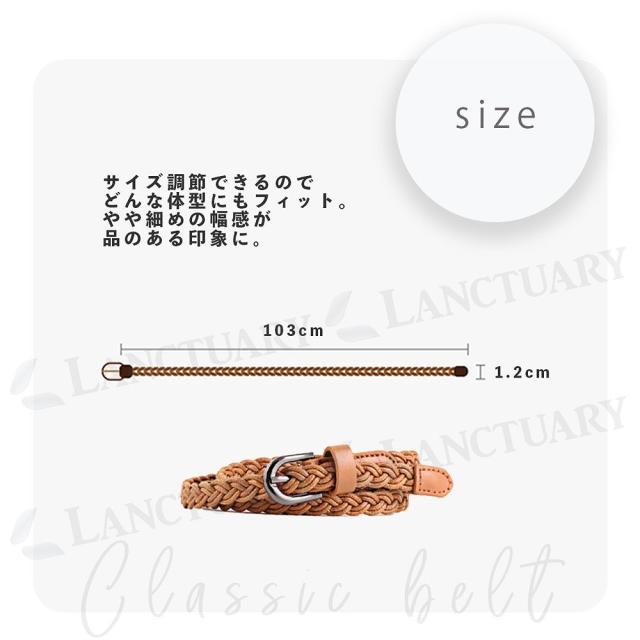 | 商品の説明 | シーン問わず様になるシンプルクラシックレディースベルト。 シンプルだからこそ、どんなシーンにも馴染む クラシックでスタンダードなベルトです。 レザーライクな質感と、 クロスデザインが クラシックで 大人らしさを演出。 オフィスにもプライベートにも 馴染む、マルチなアイテムです。 ベーシックから アクセントカラーまで 様々なシーンにマッチする 6色を取り揃えました。 イロチ買いもオススメです♪ サイズ調節できるので どんな体型にもフィット。 やや細めの幅感が 品のある印象に。 付けるだけでこなれ感のある レザーライクベルト。 細身の幅感が大人の女性らしさを演出し 上品な印象に。 さり気ないアクセントとして 大活躍の予感です♪ シンプルながらもこだわりのある デザインのバックル。 穴はなく、コードクロス部分で サイズ調節が可能です。 ダブルコードを 編み込んだシンプルながらも 目を惹くデザイン。 コードは表面感のある レザーライクな雰囲気で リッチな印象に。 |