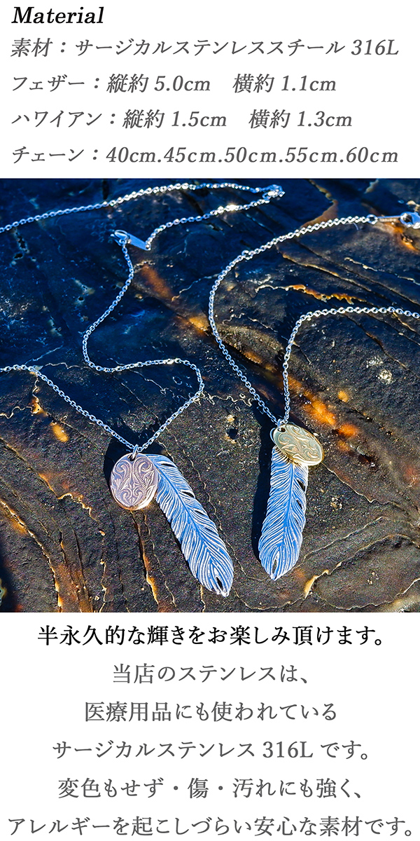 ハワイアンジュエリー ネックレス レディース ステンレス フェザー 羽 スクロール 金属アレルギー対応 アジャスターチェーン付き ギフト インスタ sale