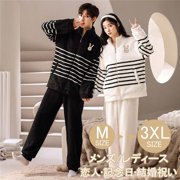 ペアパジャマ 冬 もこもこ 大きいサイズ ペア 部屋着 パジャマ ルームウェア レディース 冬 メンズ 冬用 厚手 防寒 癒し感 あったか カップル モコモコ 誕生日 ギフト 結婚祝い プレゼント 記念日 ec370g4g4zr