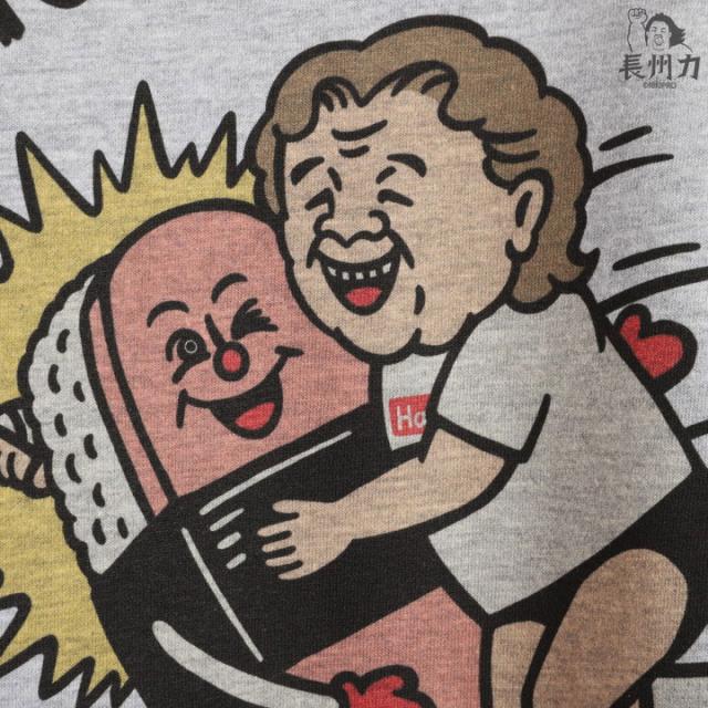大好きなランチョンミートにリキラリアットをカマしちゃう、ポップなデザインを落とし込んだ長袖Tシャツ。