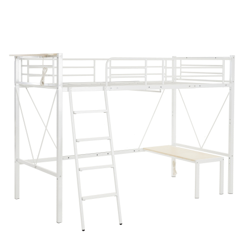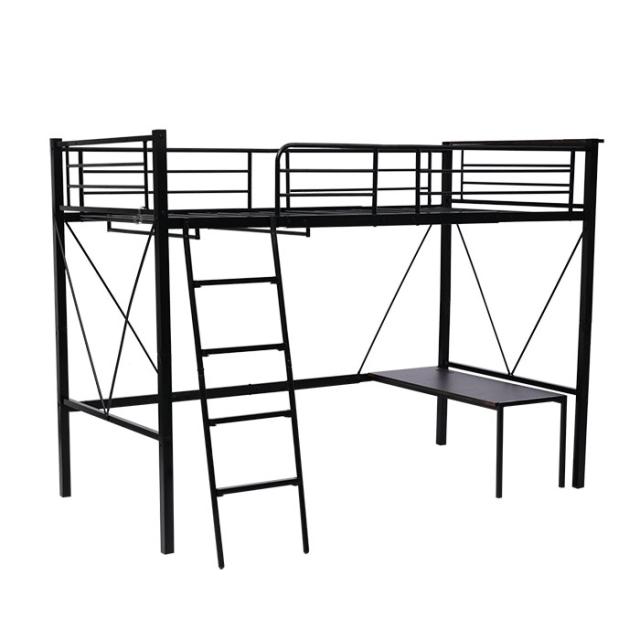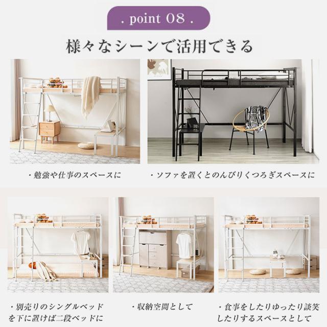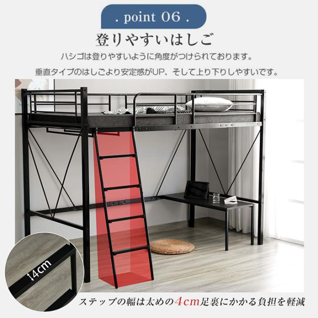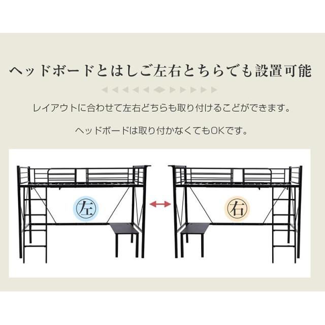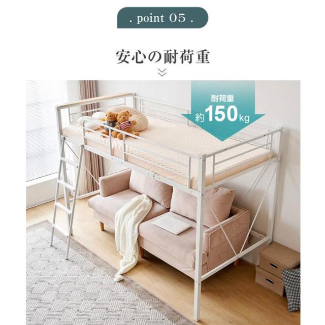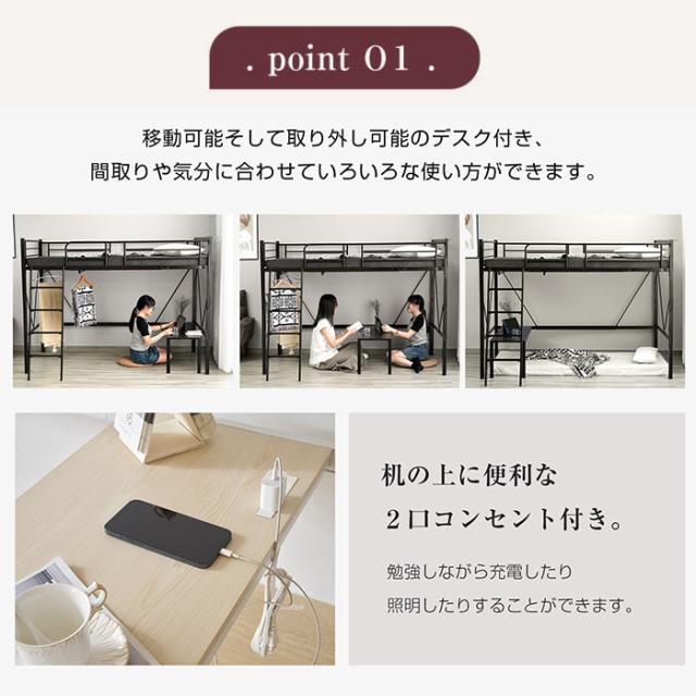 ロフトベッド パイプベッド シングルベット 耐震ベッド コンセント付き ミドルタイプ 高さ150cm ローデスク付き アイアンベッド 子供部屋 スチール ハンガーラック付き 耐荷重150kg 新生活応援