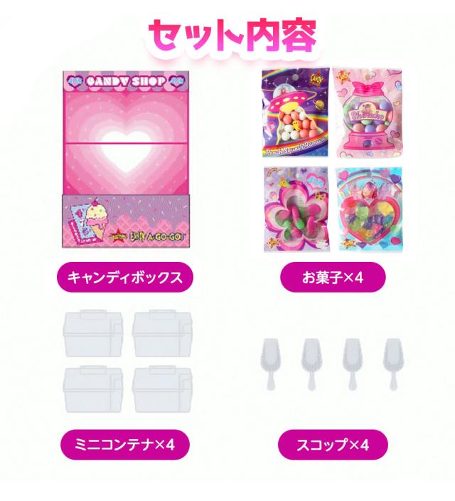 商品内容:●キャンディボックス 1個 ●ミニコンテナ 4個 ●スコップ 4個 ●お菓子 4種