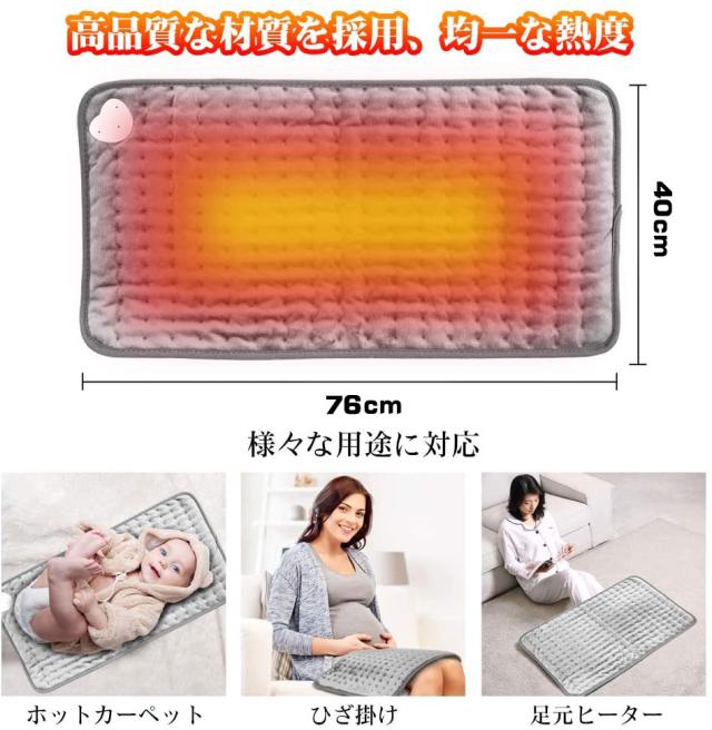 温度調節機能がついておりますので、じんわりとした暖かさで長時間でも快適に使えます。