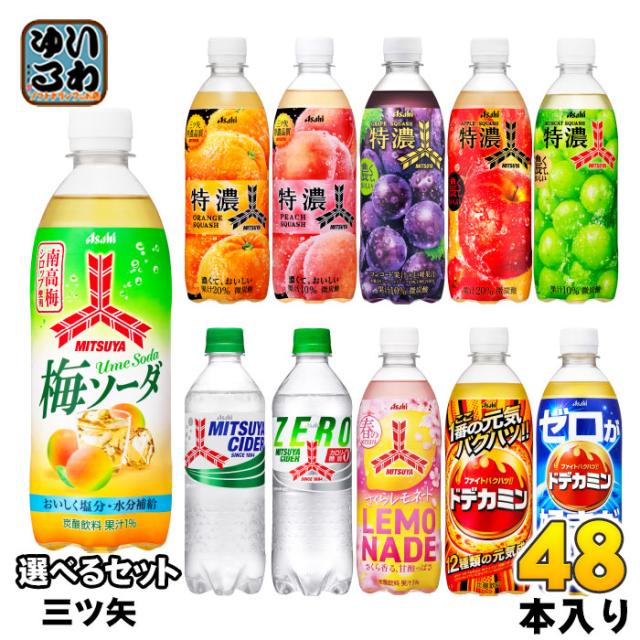 アサヒ 三ツ矢 500ml ペットボトル 選べる 48本 (24本×2) よりどり 梅ソーダ ドデカミン さくらレモネード 熱中症対策 炭酸飲料 期間限定 特濃