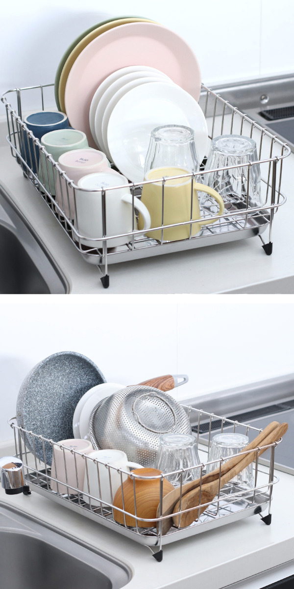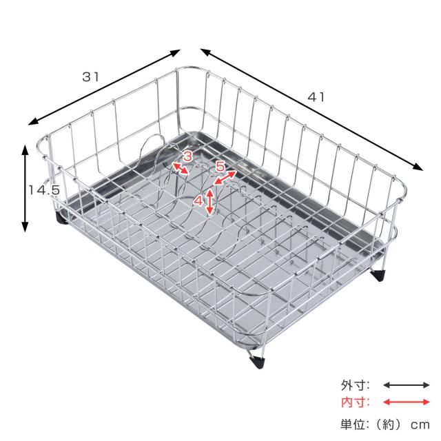 4〜5人分の食器の水切りに最適なサイズで、フライパンなどの調理器具も余裕で入って安定して水切りできます。