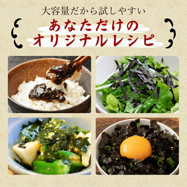 海苔巻き、おにぎりにしてお召し上がりいただくことはもちろん、水に溶かし調味料を加えて煮込むことで、ご飯がすすむ佃煮を作ることもできます。