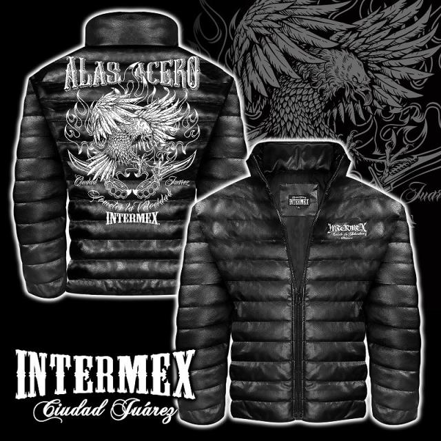 鷹柄 レザー調 中綿ジャケット INTERMEX ITM-084 メンズファッション オラオラ系 防寒 上着 服 秋冬 ライダース バイク乗り ギャング チカーノ