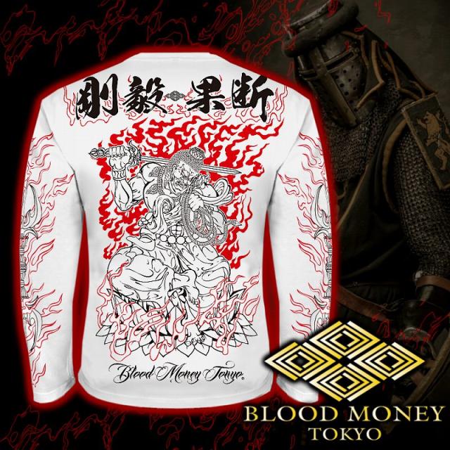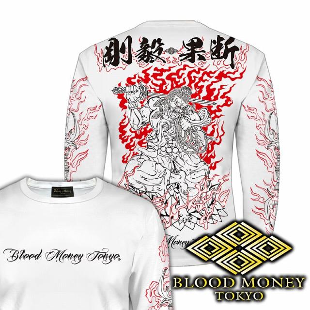 長袖 Tシャツ ロンT 服 BLOOD MONEY TOKYO 不動明王 炎 和柄 mbt-23007 白 黒 メンズ ファッション ヤクザ ヤンキー オラオラ系 派手