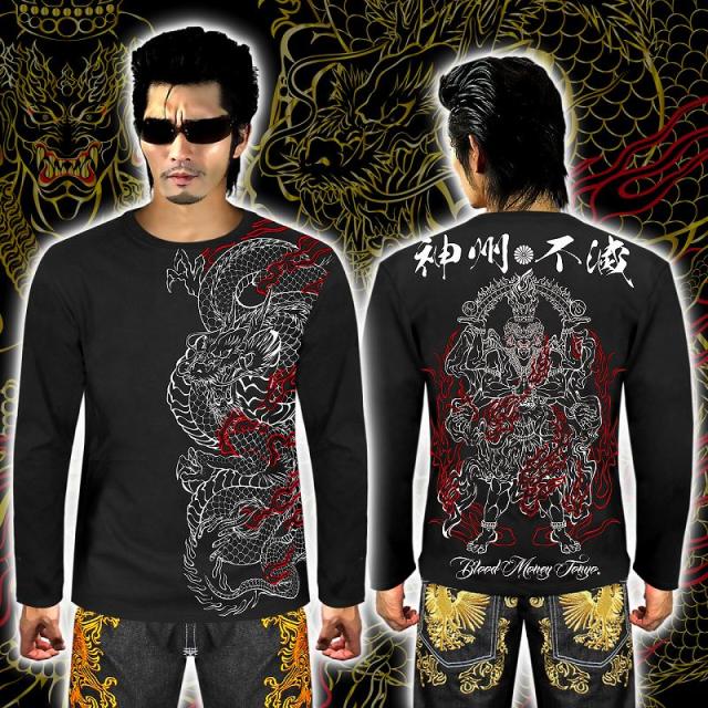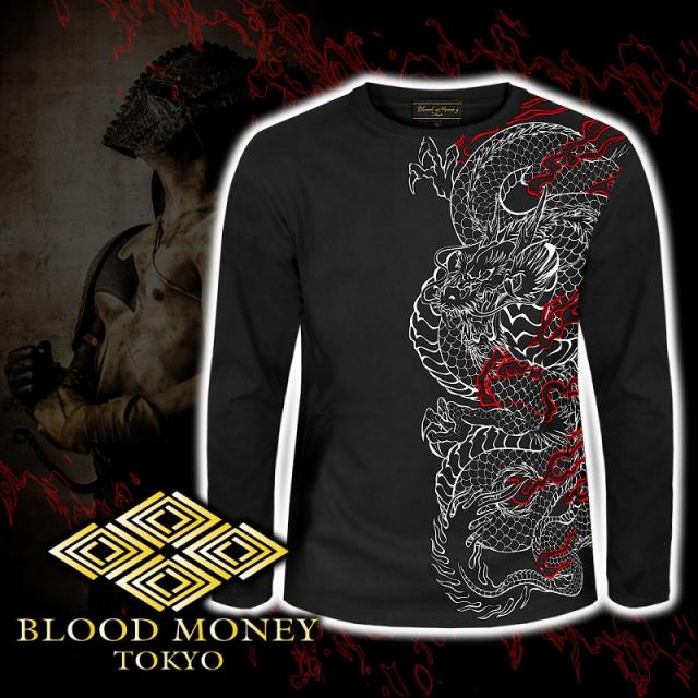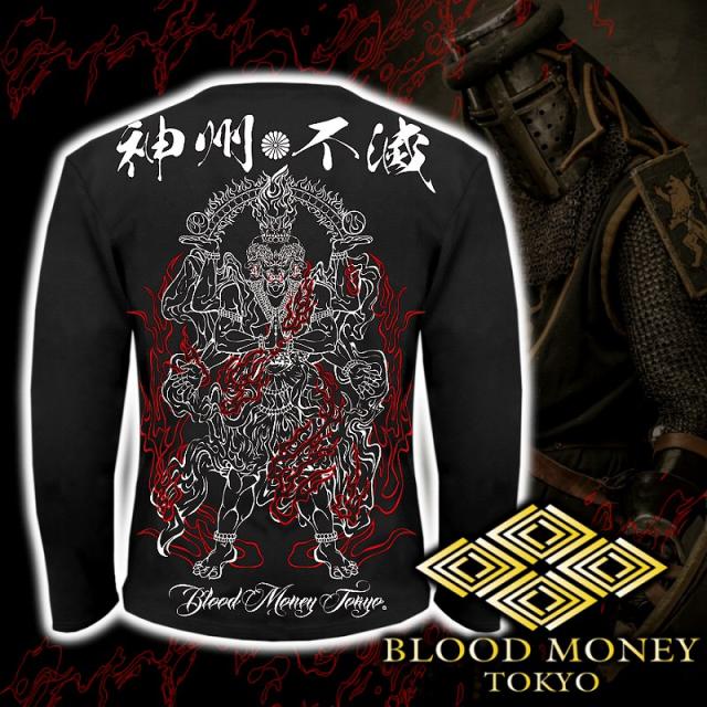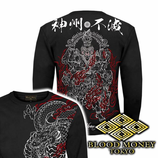 長袖 Tシャツ ロンT 服 BLOOD MONEY TOKYO 龍 阿修羅 炎 和柄 mbt-23008 黒 白 メンズ ファッション ヤクザ ヤンキー オラオラ系 派手