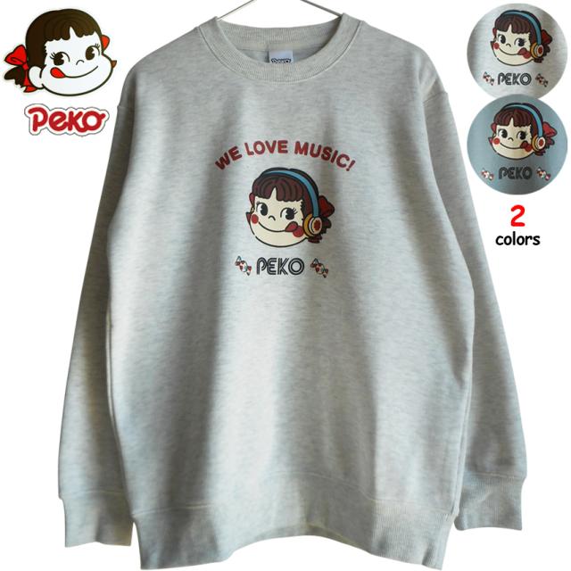送料無料 不二家 ペコちゃん トレーナー ヘッドフォン スウェット 裏起毛 レディース 音楽 ポップキャンディ スマイル くすみカラー もこもこ FUJIYA ミルキー 部屋着 あったか ペアルック サンリオ 防寒 かわいい やわらか 秋冬 グレー 緑
