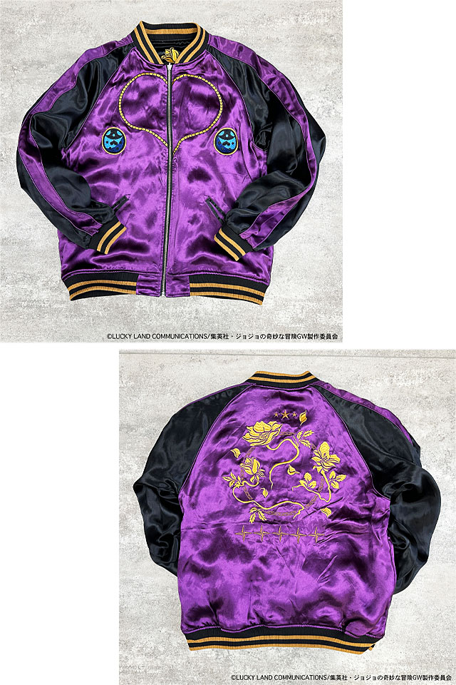 絡繰魂さんから、絡繰魂×ジョジョの奇妙な冒険 コラボスカジャン「ジョルノ・ジョバァーナ」(234090)のご紹介です。 アニメ「ジョジョの奇妙な冒険 黄金の風」と和柄ブランド絡繰魂のコラボがついに実現! 主人公の【ジョルノ・ジョバァーナ】を背中にダイナミックに刺繍しました。 ジョルノが繰り出す技を再現した花々を背景に、【G・E】を纏う姿を極上の刺繍で演出。 リバーシブル裏面は、ジョルノの服をイメージしました。 胸部には【このジョルノ・ジョバァーナには正しいと信じる夢がある】と刺繍されています。 ボディーにはレーヨンサテンを使用し、ドレープや陰影がくっきりと現れています。 | ||||||||||||||||||||