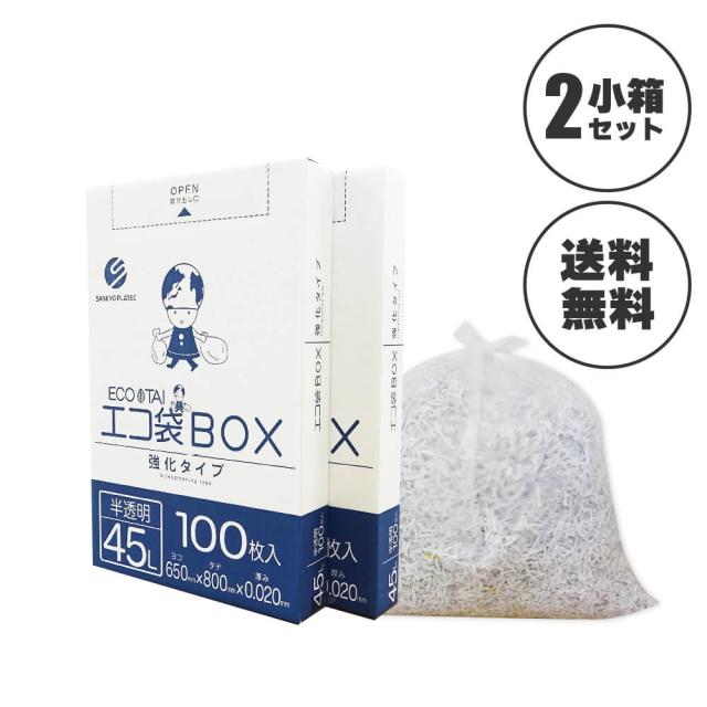 ※販売終了※ポリ袋 ゴミ袋 箱タイプ 45リットル 半透明 65x80cm 0.020mm厚 100枚x3小箱 BX-535-3kobako /ごみ袋 45l ナチュラル 送料無料