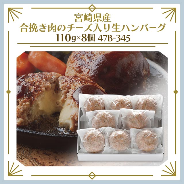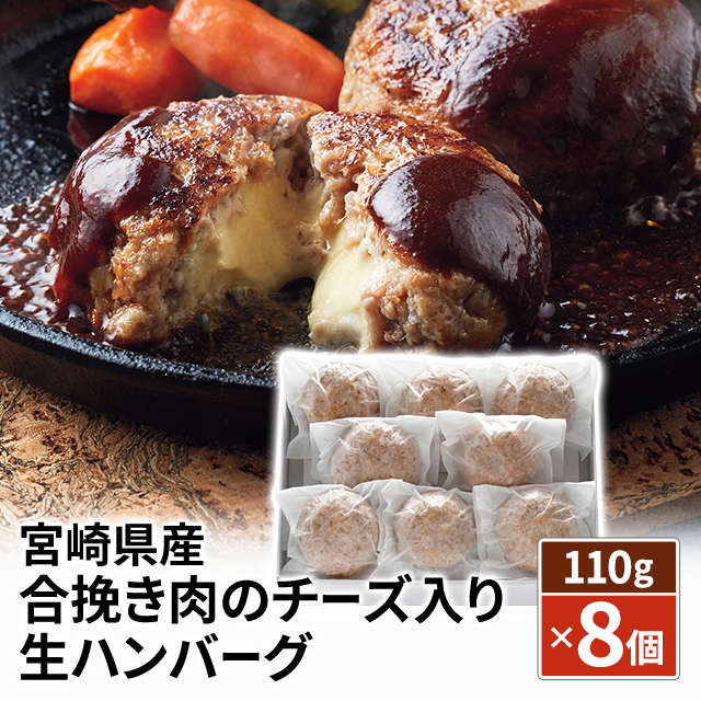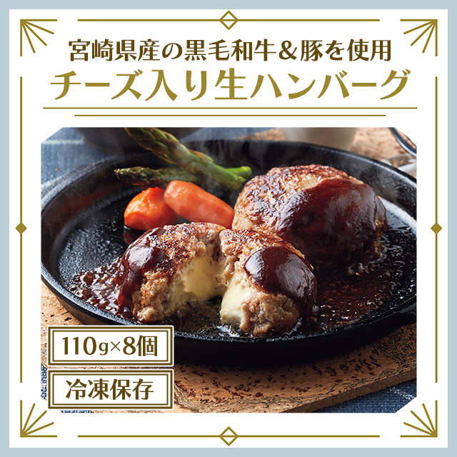 送料込み 宮崎県産 合挽き肉のチーズ入り生ハンバーグ 110g×8個 47B-345 冷凍 国産 ハンバーグ チーズ 生ハンバーグ 冷凍食品