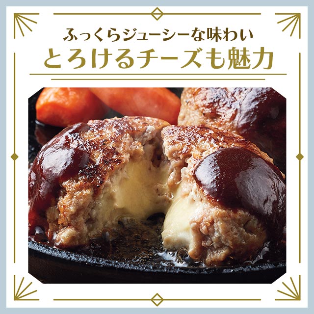 ・あふれる肉汁とチーズが相性ばっちり。本格的な味わいのハンバーグです。