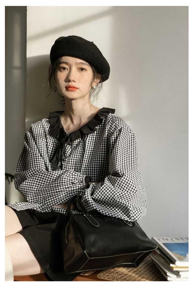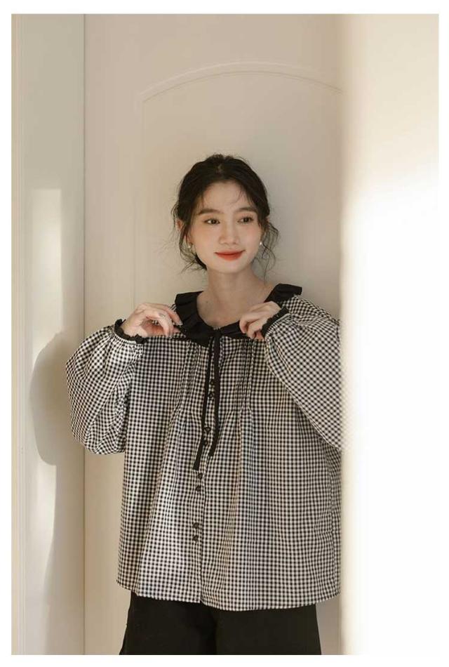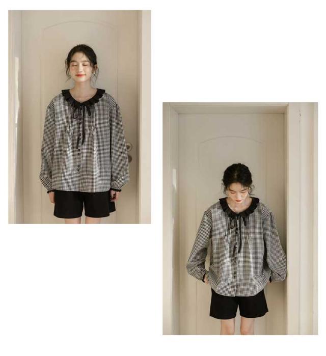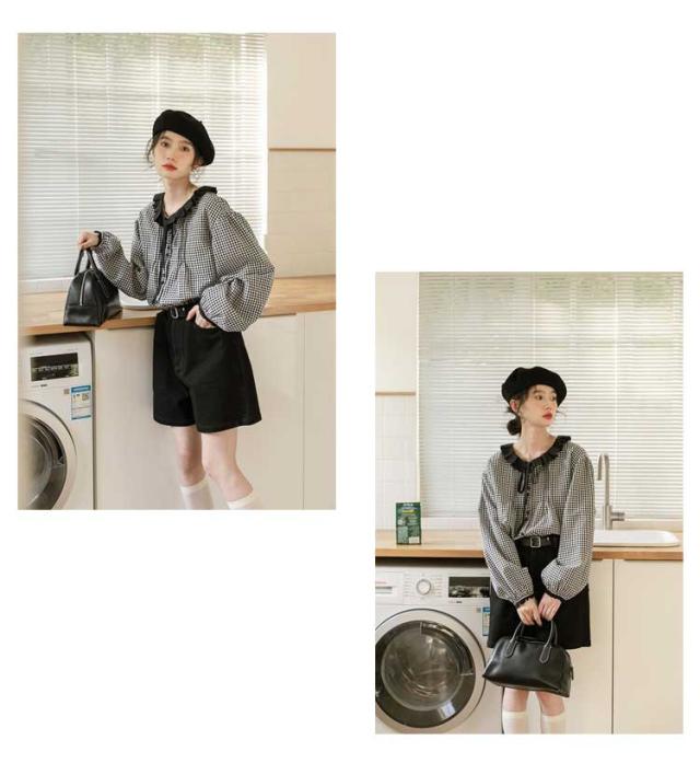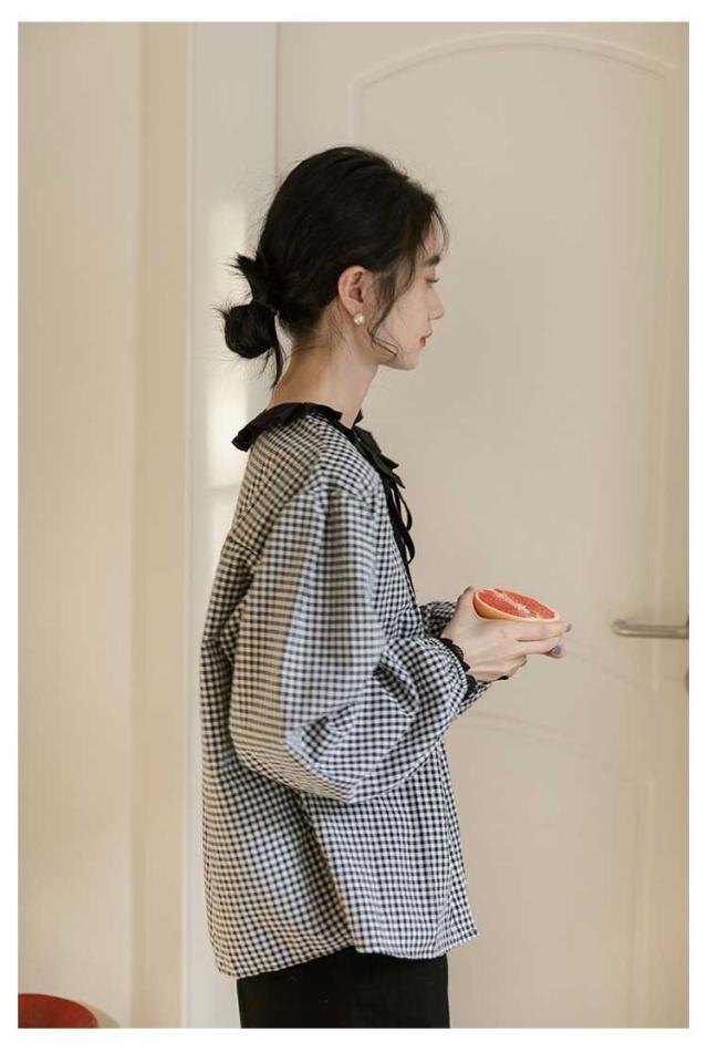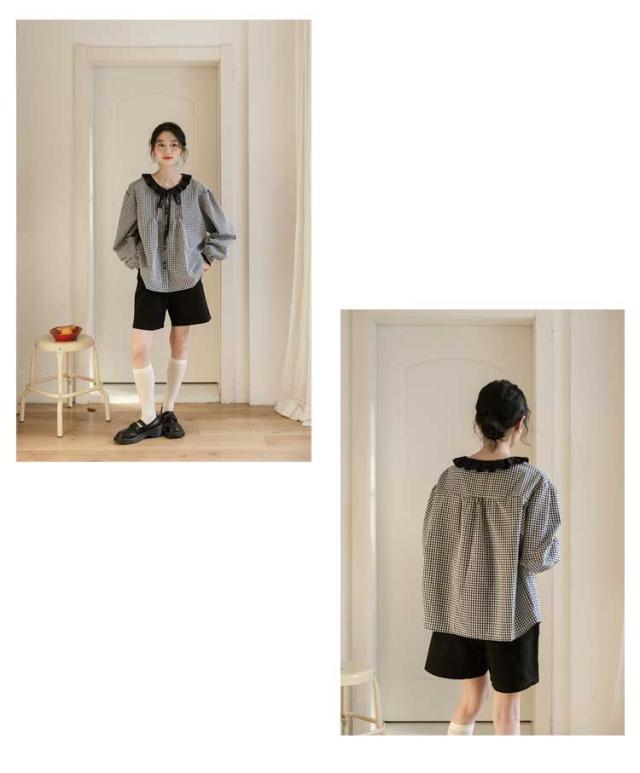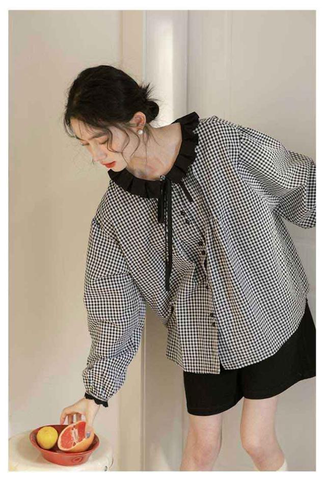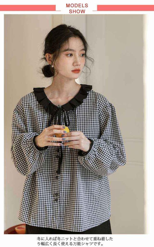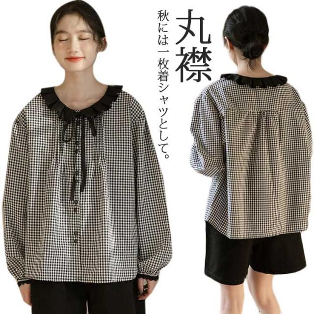 シャツ レディース ブラウス シャツブラウス チェック柄 長袖 丸襟 トップス 体型カバー ゆったり カジュアル 大きいサイズ 羽織り 可愛い 着痩せ きれいめ おしゃれ 着回し 森ガール 春 夏 秋 通勤 通学 シンプル 韓国ファッション