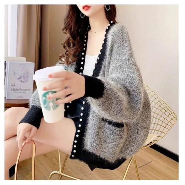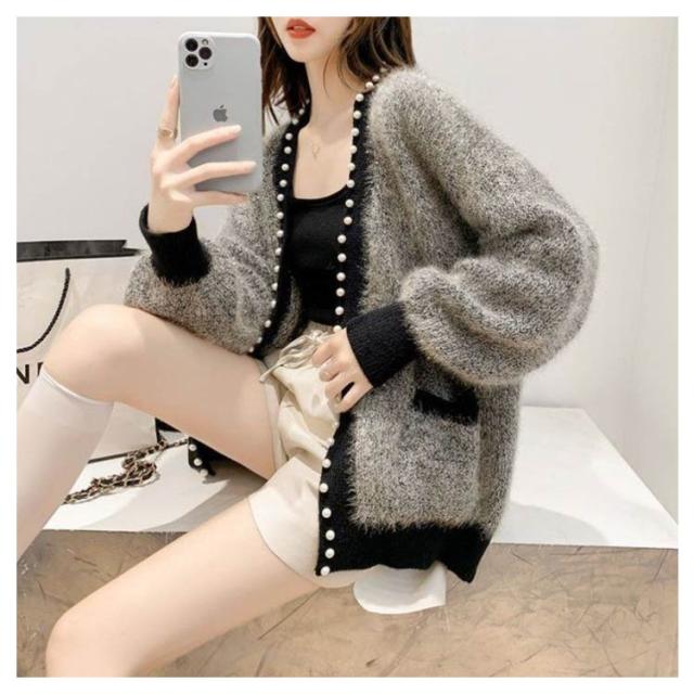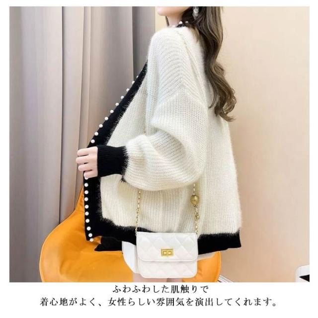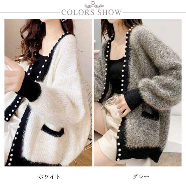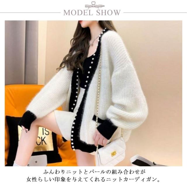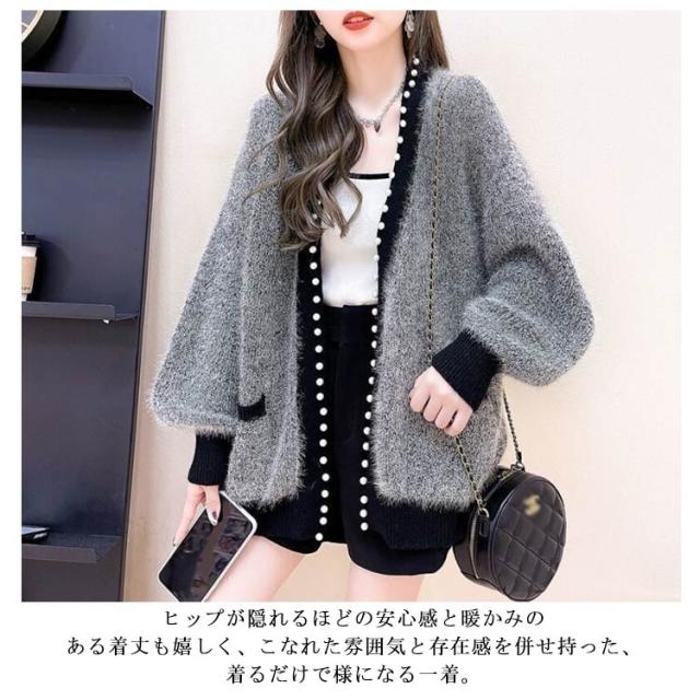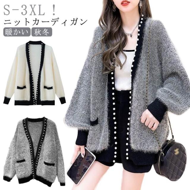 ニットカーディガン 秋冬 ニット カーディガン レディース 秋服 長袖 アウター パール付き 羽織り ニットカーデ 無地 セーター ふわふわ モコモコ 暖かい 防寒 ゆったり 体型カバー 韓国ファッション きれいめ カジュアル 春 秋 冬 送料無料 S-3XL