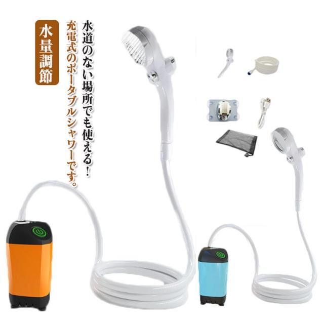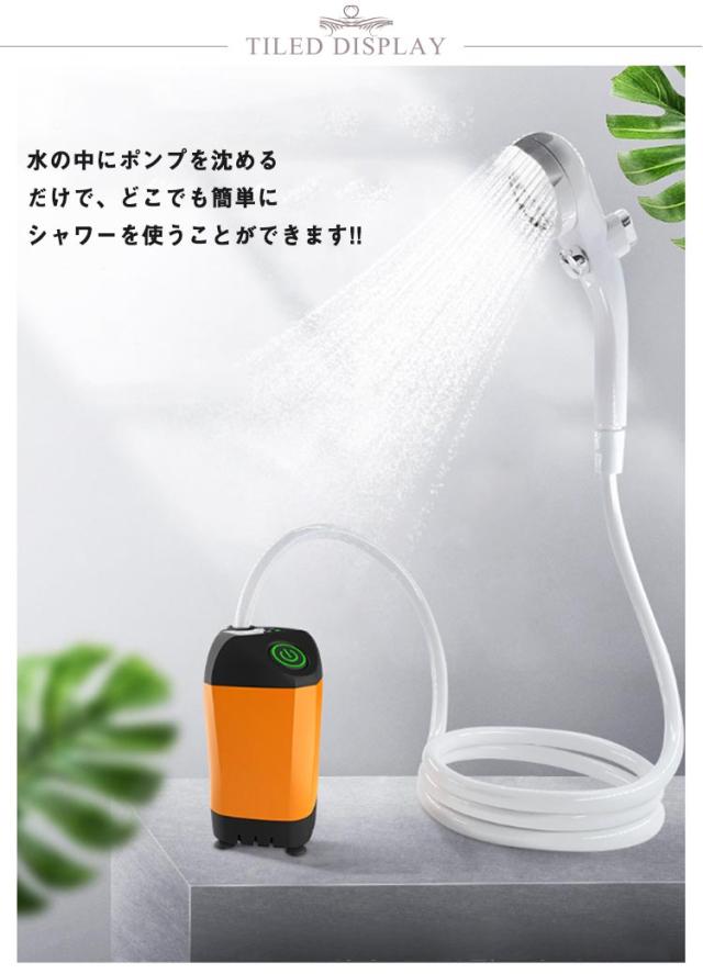 簡易シャワー ポータブルシャワー 電動シャワー アウトドア USB充電式 連続90分 コードレス ポンプ式 フック 吸盤 アウトドアシャワー 水量調節 車 サーフィン 海水浴 洗髪 キャンプ 洗車 便利グッズ 災害 避難 防災 プール ペットシャンプー ガーデニング BBQ 介護