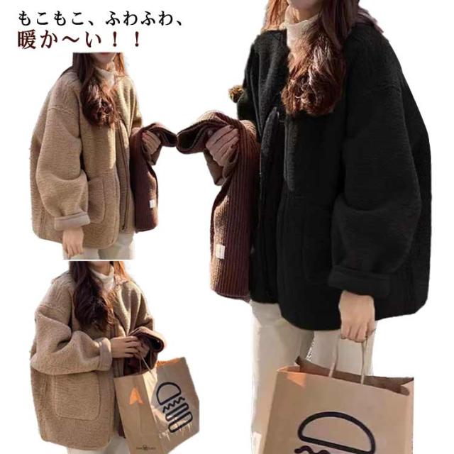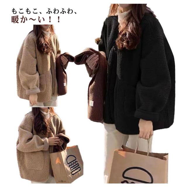 ブルゾン ジャケット アウター ジャンバー レディース ボアジャケット ボアコート ボアブルゾン アウトドア 秋 冬 ボア 暖かい 防寒コート ポケット あったか もこもこ ふわふわ おしゃれ 無地 カジュアル シンプル ショート丈