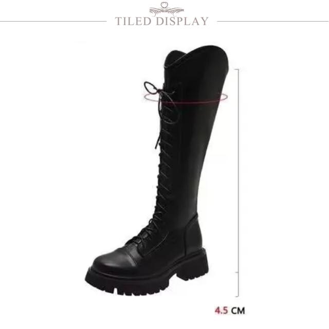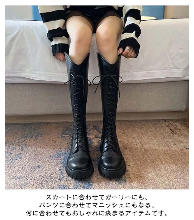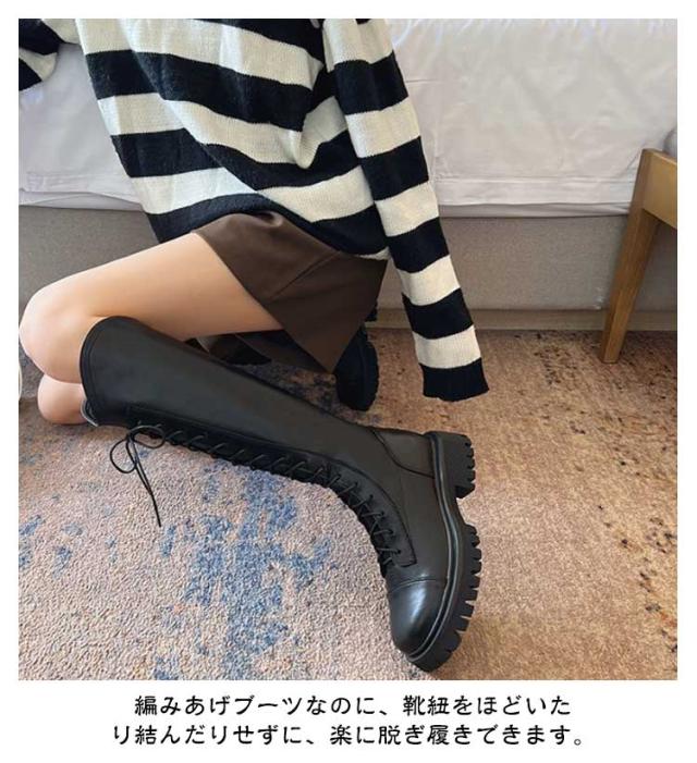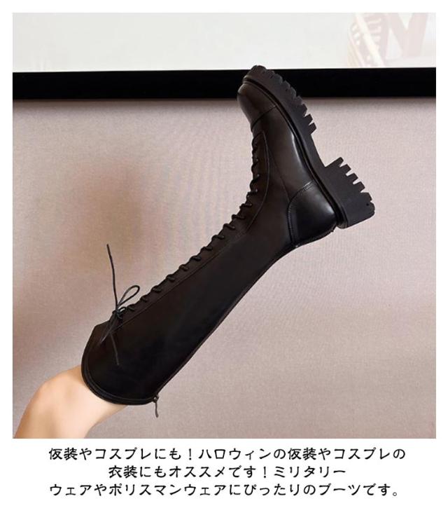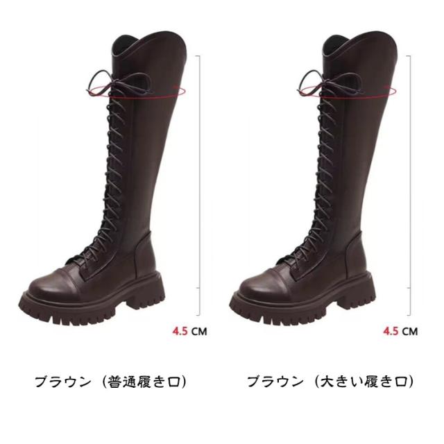 ブーツ レディース 厚底 ロングブーツ 厚底ブーツ ローヒール ヒール4.5cm レースアップ ロング丈 膝丈 歩きやすい 編み上げ エンジニアブーツ バックジッパー ジョッキーブーツ 美脚 コスプレ 衣装 ゆったり 小さいサイズ 大きいサイズ 22.5-25cm 春 秋 冬