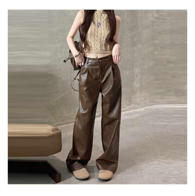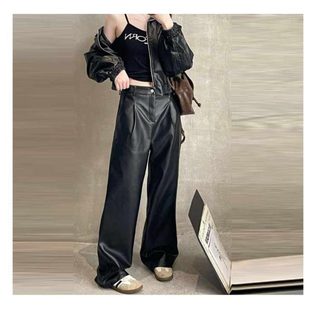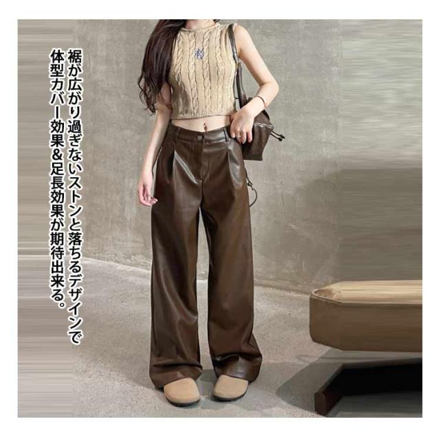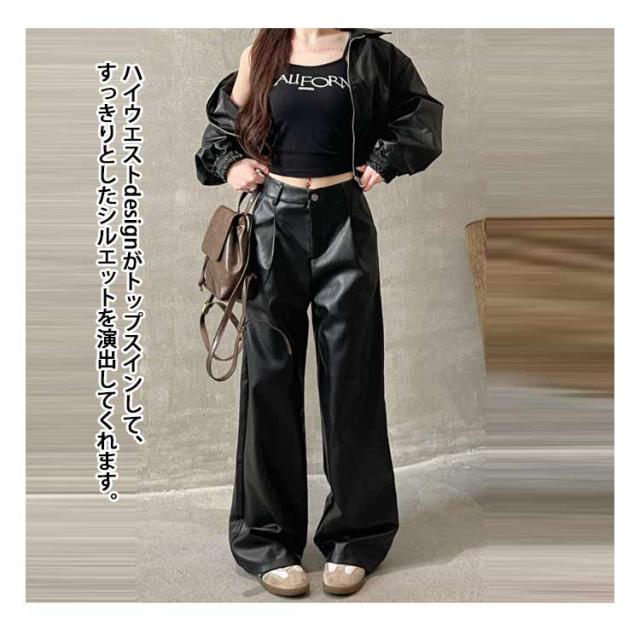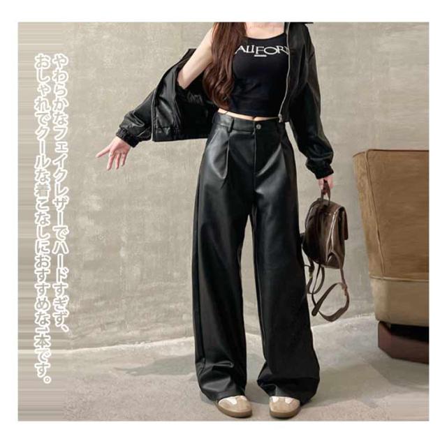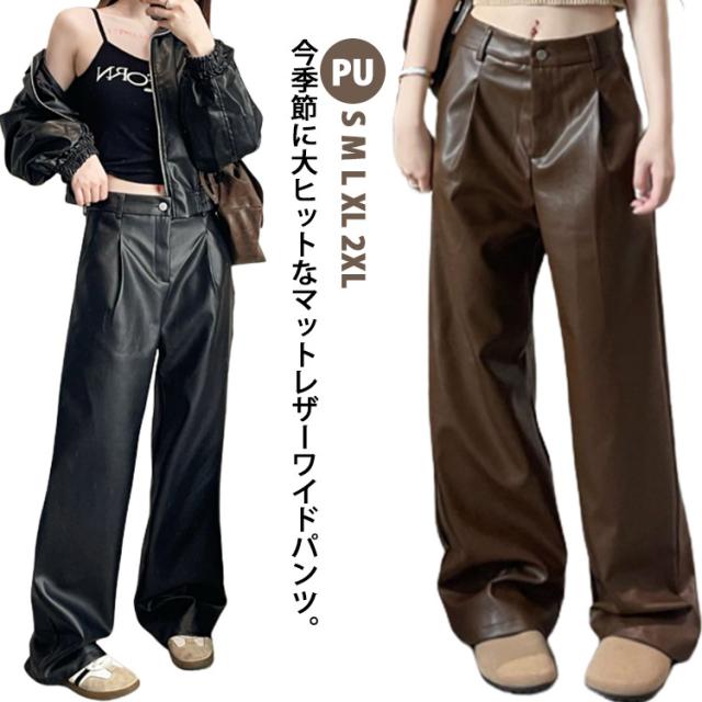 レザーパンツ レディース ワイドパンツ ガウチョパンツ PU革パンツ カーゴパンツ フェイクレザーパンツ 革レザーパンツ PU パンツ ロングパンツ ストレート ズボン ボトムス ハイウエスト 大きサイズ 秋冬 ダンス衣装 ダンスパンツ ヒップホップ 送料無料 細身 韓国