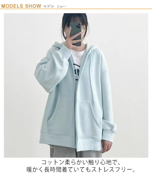 スウェット パーカー レディース トップス ボアパーカー 厚手 暖か 裏起毛 裏ボア ジップパーカー フード付き アウター 長袖 スウェット 大きいサイズ 無地 ゆったり カジュアル 体型カバー 男女兼用 秋 冬 通勤 通学 韓国