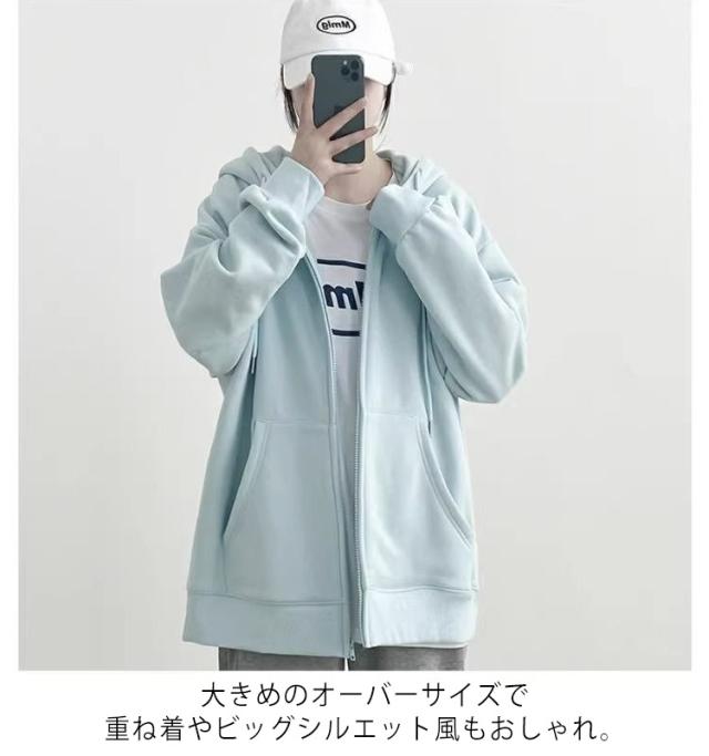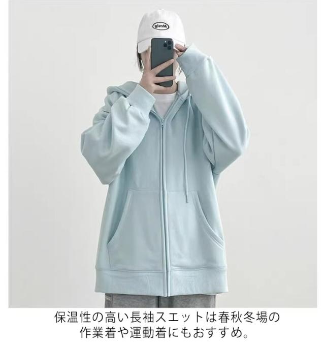 | "ゆるっとしたビッグシルエットのジップアップパーカー。 コットン柔らかい触り心地で、暖かく長時間着ていてもストレスフリー。 大きめのオーバーサイズで重ね着やビッグシルエット風もおしゃれ。 保温性の高い長袖スエットは春秋冬場の作業着や運動着にもおすすめ。 豊富なサイズでタイトからゆったりまで着用頂けます。男性・女性対応のユニセックス(男女兼用)サイズ。" | |