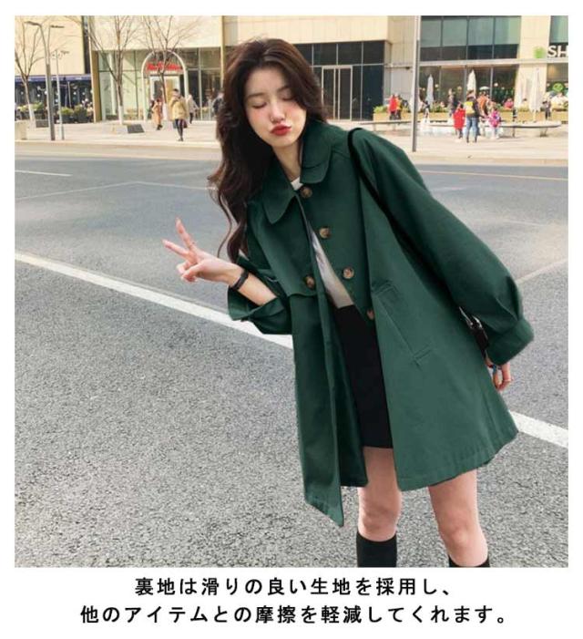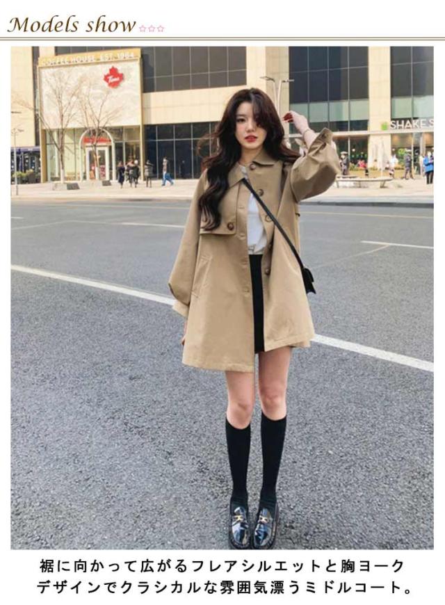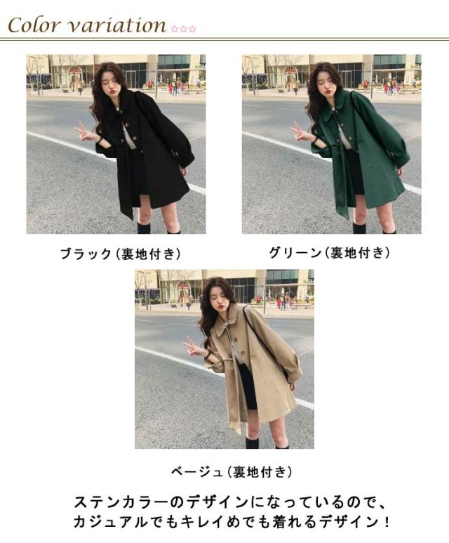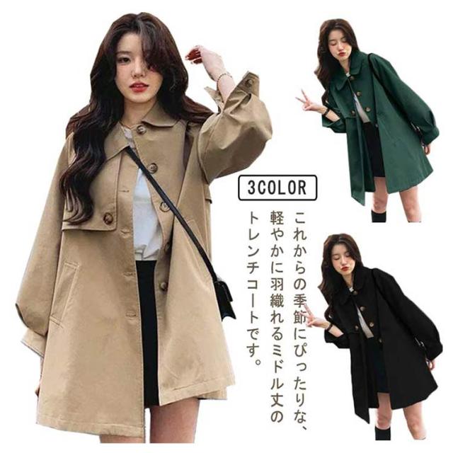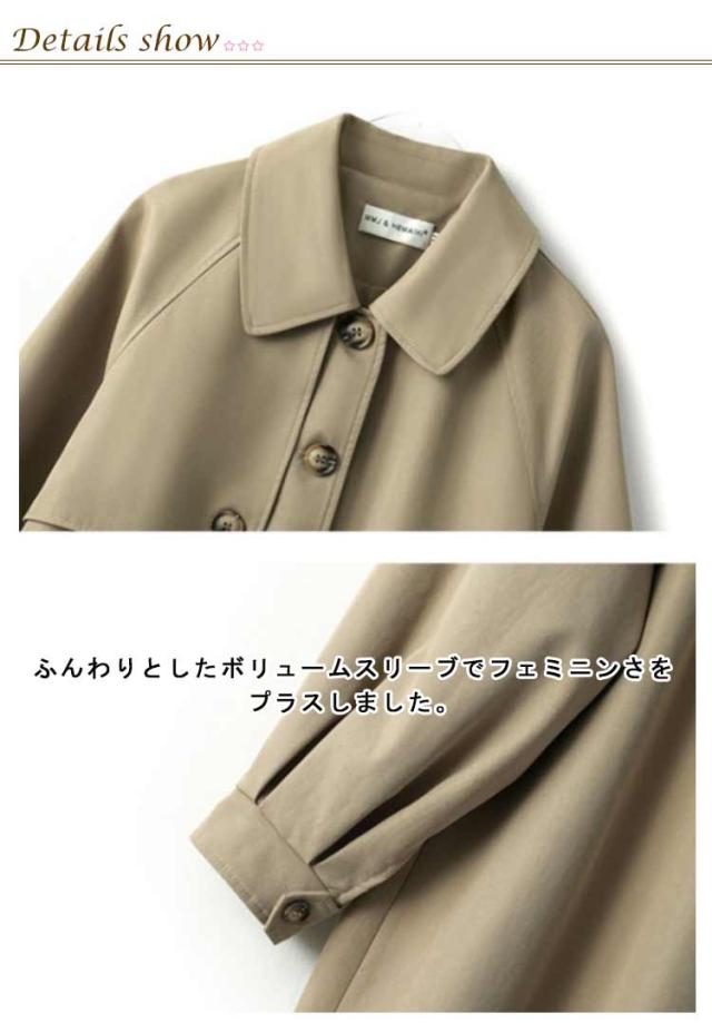 ステンカラーコート ボリュームスリーブ トレンチコート レディース 春 秋 冬 コート ミドル丈 裏地付き Aライン フレア ステンカラー コート トレンチ ゆったり ハーフコート 羽織り 大人 カジュアル オフィス 通勤 通学 スプリングコート 【送無】