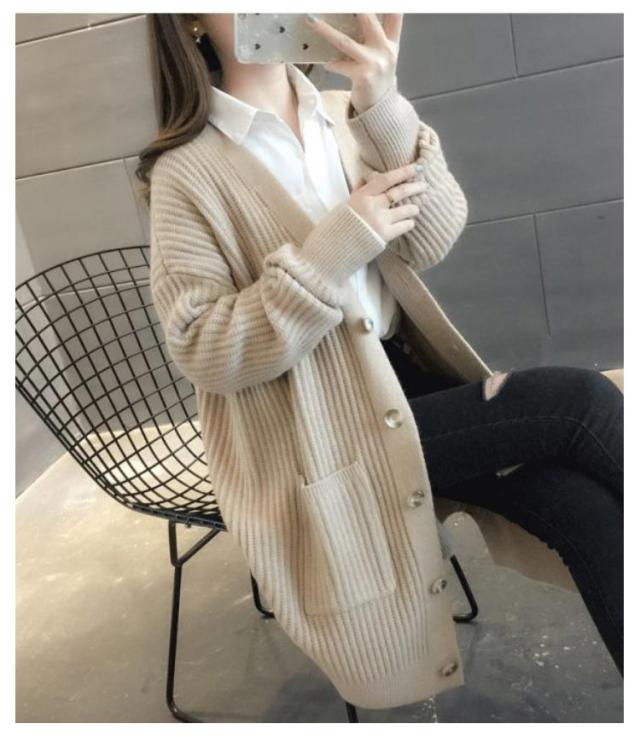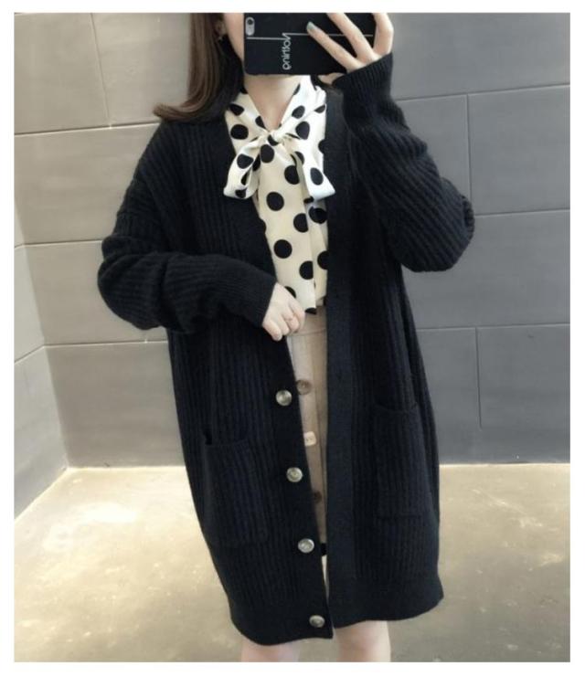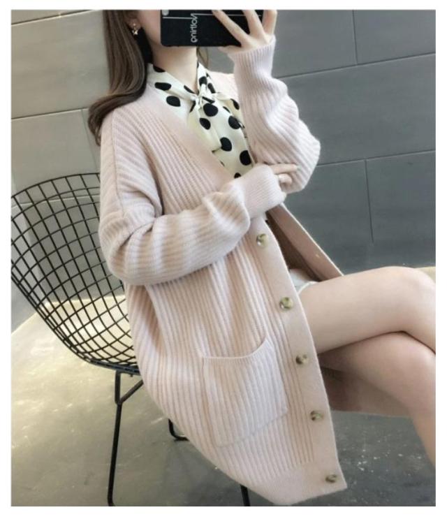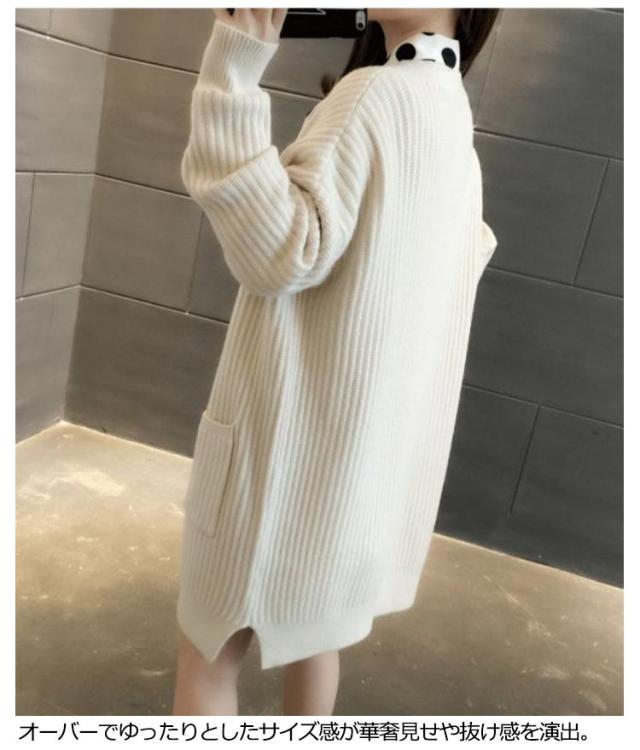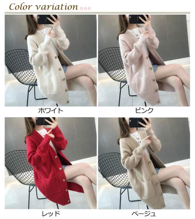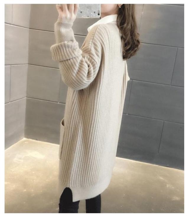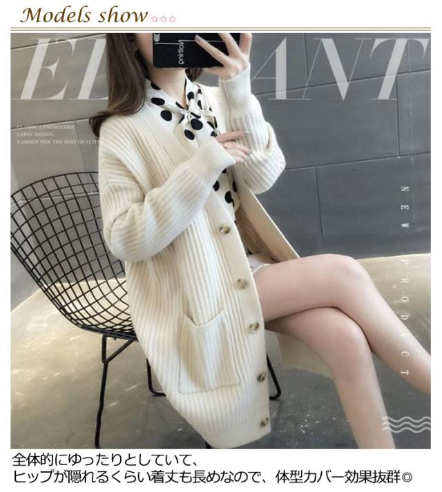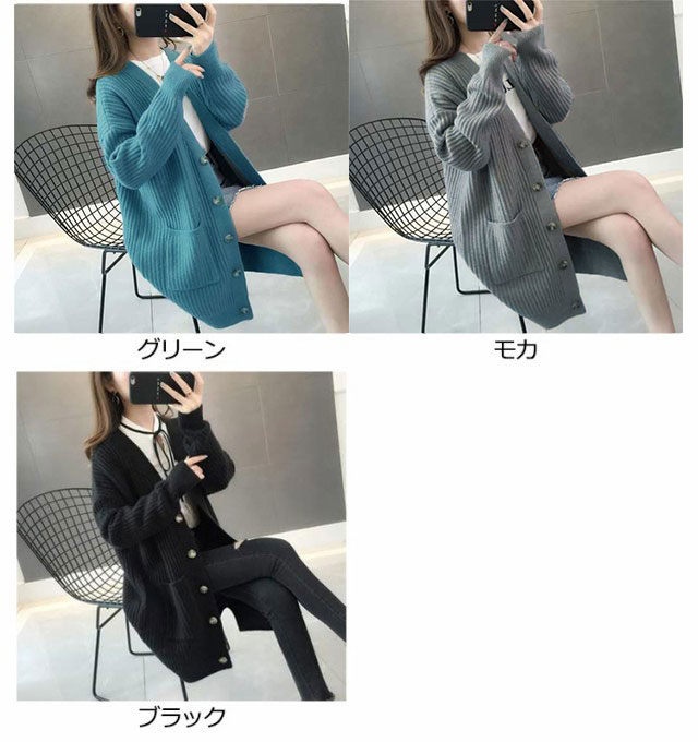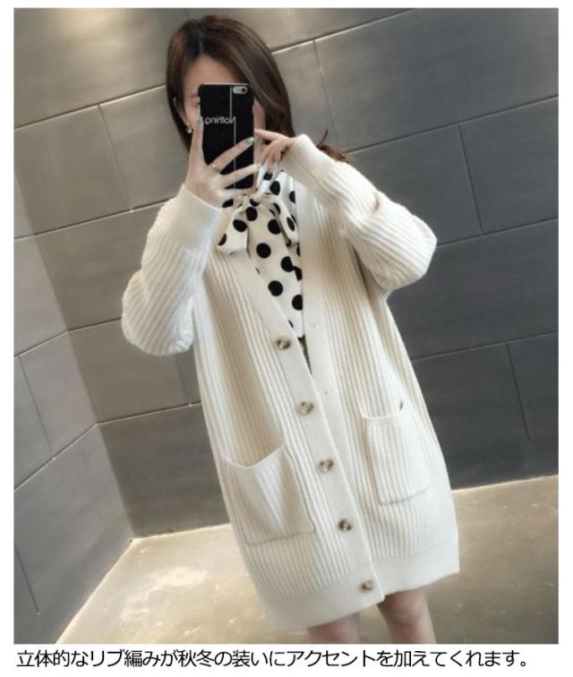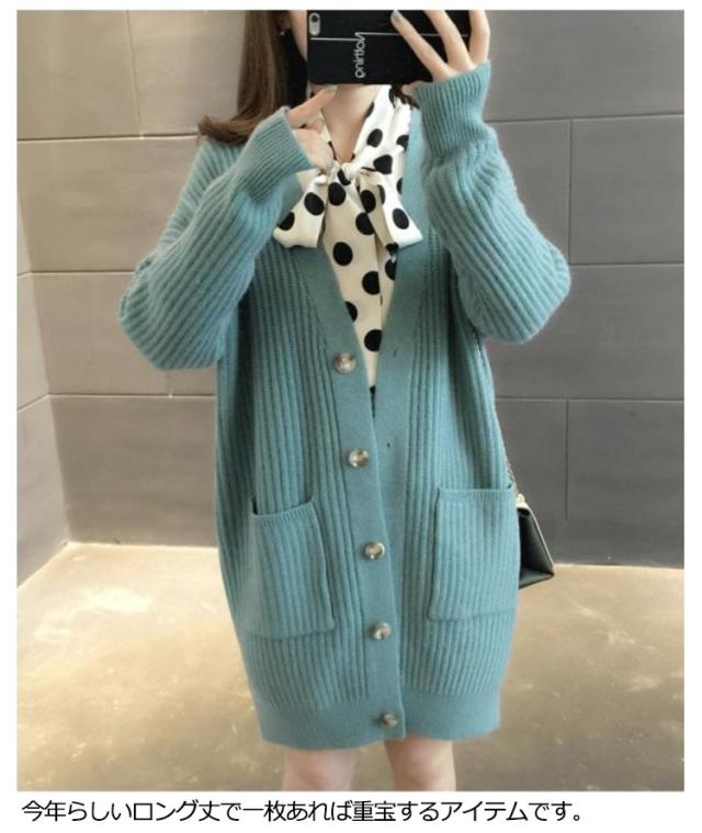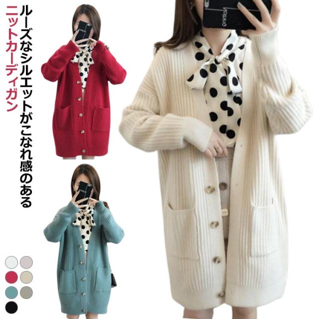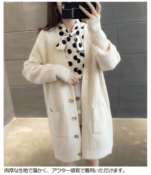 ニットカーディガン ロング レディース 秋 冬 ニット カーディガン Vネック リブ編み 厚手 あたっか 防寒 ロングカーディガン ミドル丈 羽織り アウター ゆったり オーバーサイズ ポケット付き 韓国風 無地 シンプル 大人 カジュアル 通勤 通学 【送無】
