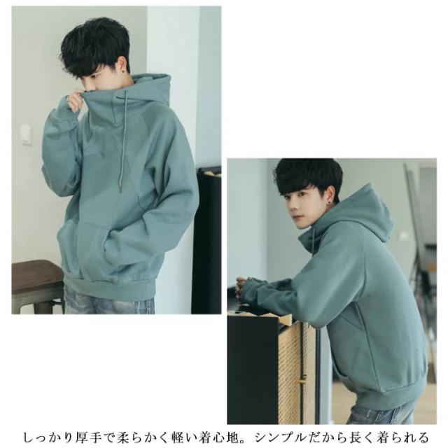 裏起毛 スウェットパーカー メンズ 無地 プルオーバーパーカー レイヤード パーカー 秋冬 暖かい 韓国 ファッション ビッグパーカー 長袖 シンプル あったか ゆったり おしゃれ 送料無料