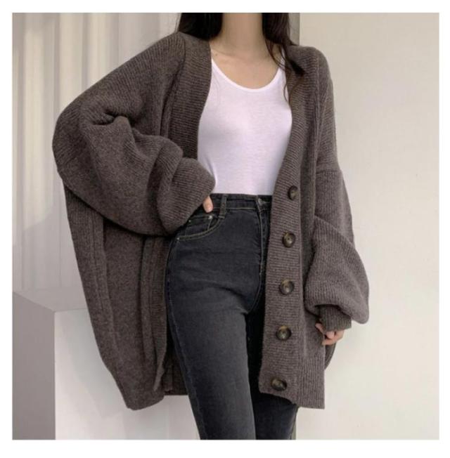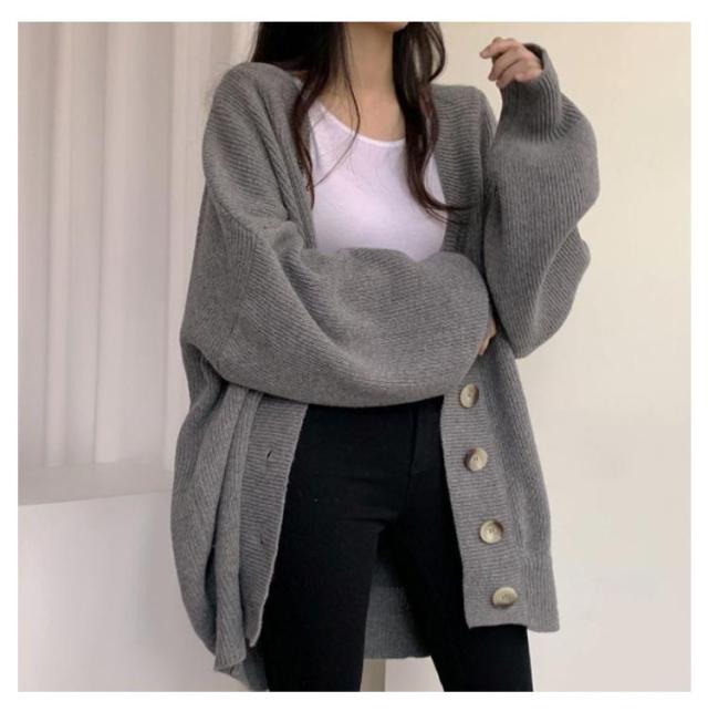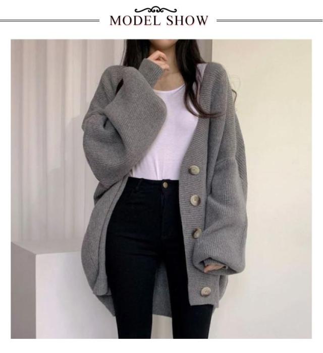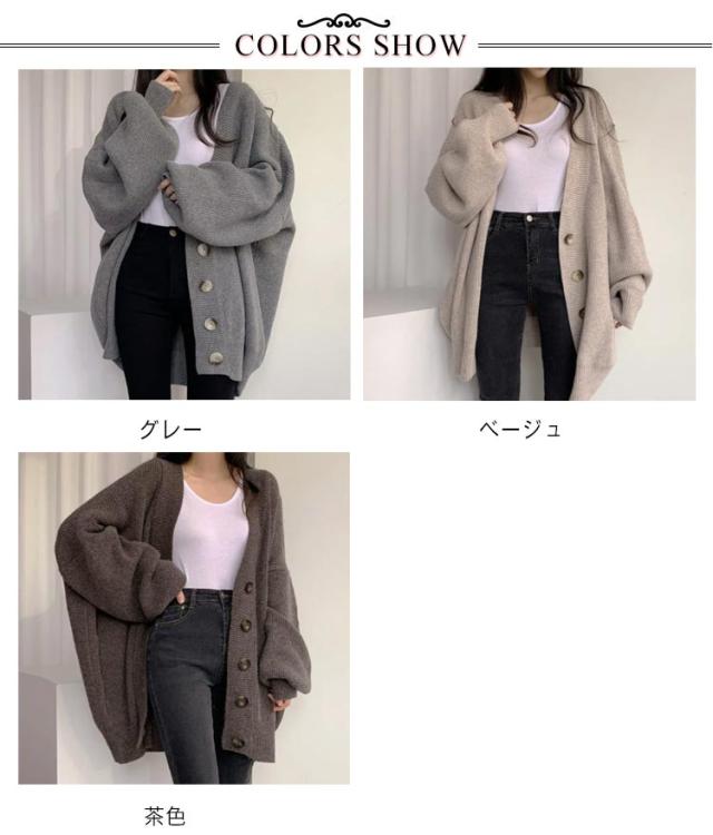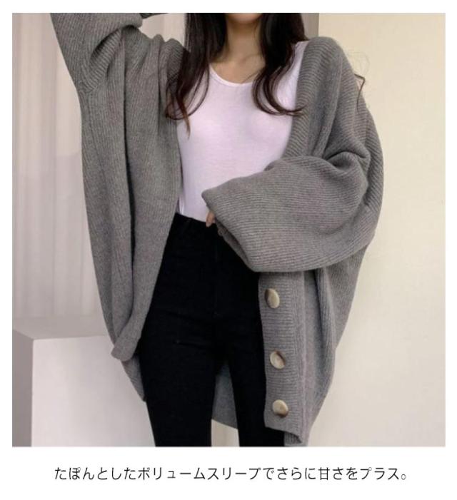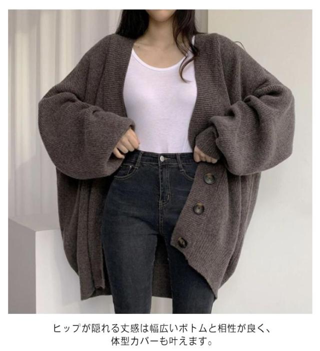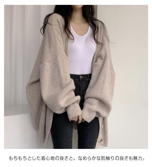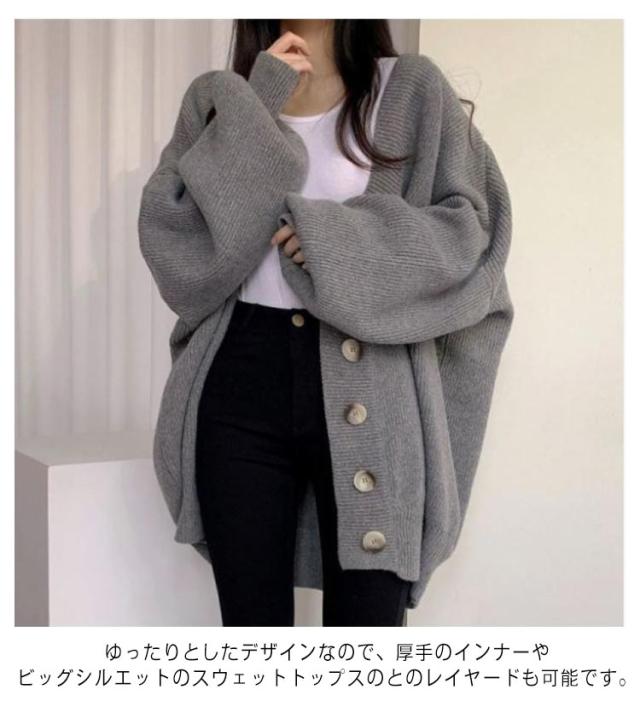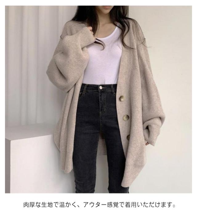 ニット カーディガン 厚手 レディース 秋 冬 ニットカーディガン Vネック ロング ボリュームスリーブ あたっか 防寒 ロングカーディガン ミドル丈 リブ編み 羽織り アウター オーバーサイズ 体型カバー 韓国風 無地 シンプル 大人 カジュアル 【送無】