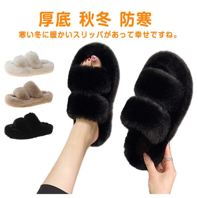 厚底 サンダル レディース ファーサンダル もこもこ スリッパ ファースリッパ 4cm 厚底 ルームシューズ 秋冬 ボア 来客用 クリスマス プレゼント ボアスリッパ 防寒 ふわふわ 送料無料
