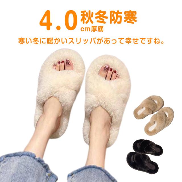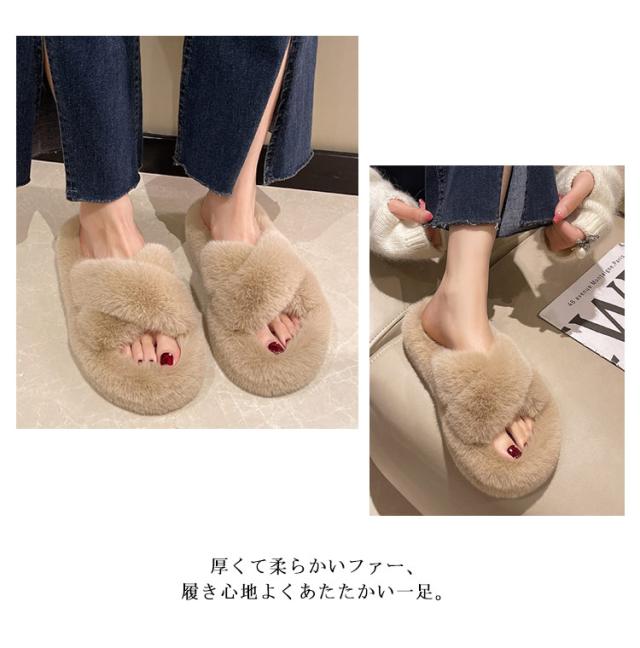 クロスサンダル 厚底 サンダル レディース ファーサンダル もこもこ スリッパ ファースリッパ 4cm 厚底 ルームシューズ 秋冬 ボア 来客用 クリスマス プレゼント ボアスリッパ 防寒 ふわふわ 送料無料