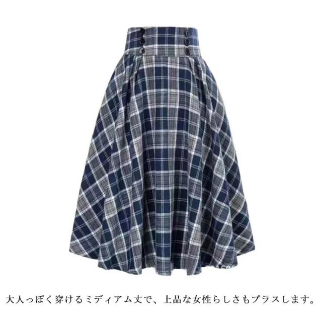 チェックフレアスカート スカート チェック 格子柄 グレンチェック フレアスカート ミディアム Aラインスカート ハイウエスト クラシック フレア かわいい 春 秋冬