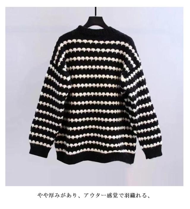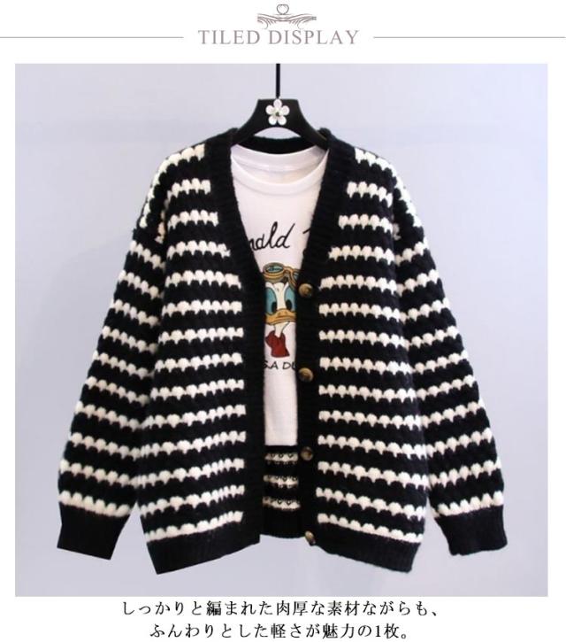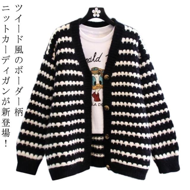 ニットカーディガン レディース 冬 カーディガン ニットコート ボーダー柄 アウター 羽織 厚手 秋冬 ゆったり ツイード風 ニット