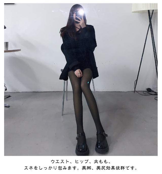 | SNSで話題!ストッキング風極暖フェイクタイツ 600デニールの裏起毛でふわふわぽかぽか。 【素材】ウエスト、ヒップ、太もも、スネをしっかり包みます。美脚、美尻効果抜群です。裏には足まで起毛の仕様で、ふんわりあたたかく、熱を逃しません。中の縫い部分は滑らかですっと穿けます。 【透け感の秘密】 秘密は特殊な加工の生地にあります。伸縮すると、内側に見えるベージュ色が変化。伸びるほどブラックが薄く、ベージュ色が濃くなって、まるでストッキングを履いている肌の色のよう。上品な透け感がオシャレさと美しいシルエットの脚ラインを演出します。 【痩せ見え効果】 程よいのフィット感で、太ももから足元まで、気になるお肉をすっぽりと包み込み、痩せ見え効果抜群。 | |