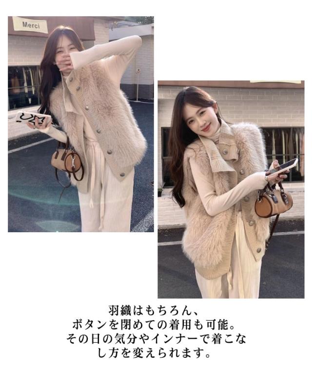 ファーベスト レディース ベスト ジレ 秋冬 トップス カーディガン ボレロ ファージレ ライトアウター アウター 防寒 レイヤード 重ね着 ミドル丈 羽織 秋 冬 大きいサイズ きれいめ カジュアル