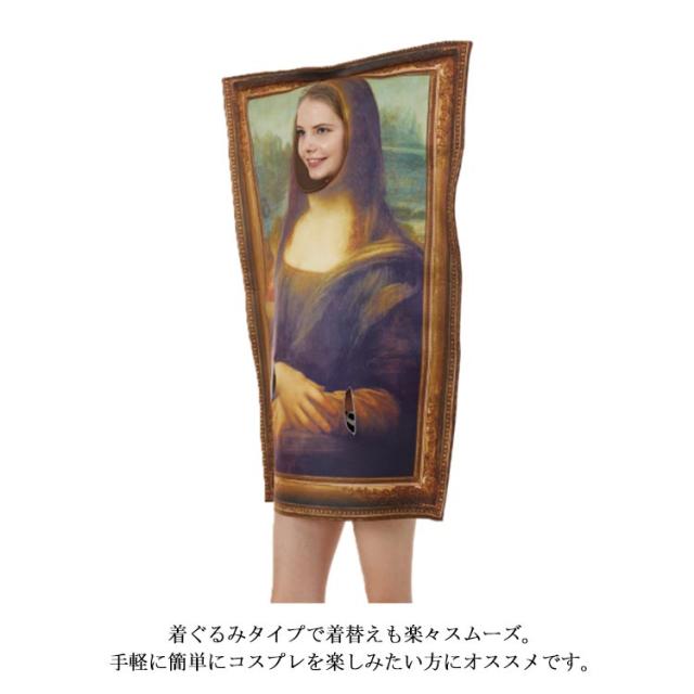 | イベントや宴会で大爆笑!注目度バツグンのモナリザ絵画のコスチューム衣装です。 着ぐるみタイプで着替えも楽々スムーズ。手軽に簡単にコスプレを楽しみたい方にオススメです。 特別なデザイン、個性的でどこへ着て行っても目立つこと間違いなし! ハロウィーンパーティーはもちろん、お祭りやお遊戯会、学園祭、文化祭、発表会、お誕生会、クリスマス、イベント時などのcosplay | |
