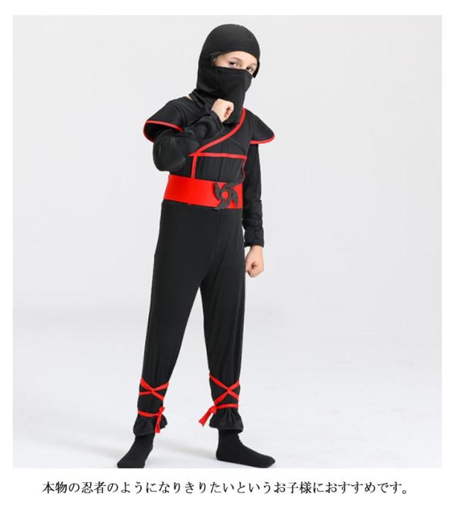 忍者 忍び コスプレ 衣装 10点セット 子供用 コスプレ衣装 ニンジャ 変装 仮装 上下セット 長袖 コスチューム 忍者服 キッズ 男の子 女の子 ハロウィン パーティー イベント 演出服 文化祭 学園祭 かっこいい 大きいサイズ 黒 ブラック 【送無】