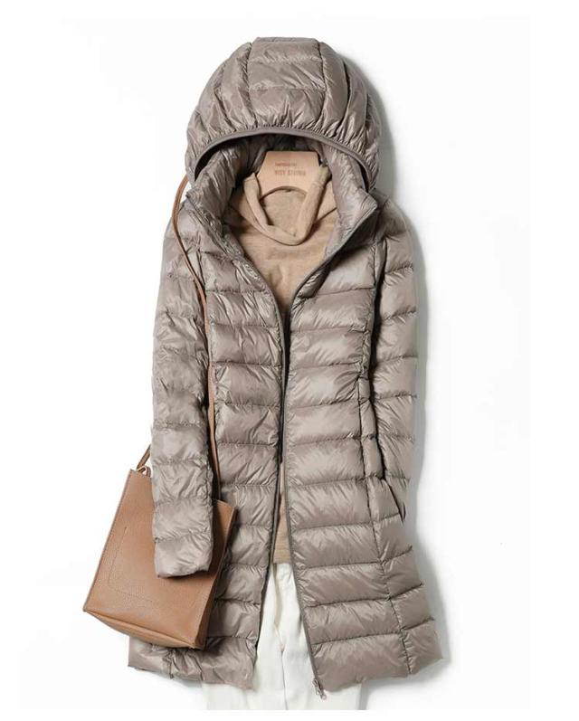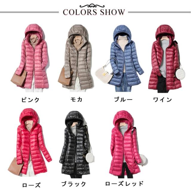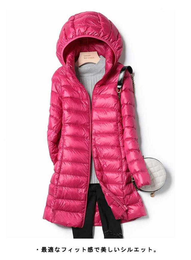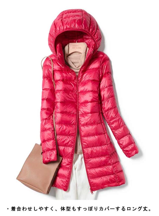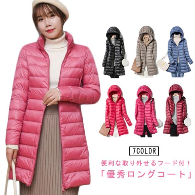 ダウンジャケット ダウンコート レディース ロング ライトダウン ポケッタブル 軽量 暖かい 薄型 フード付き スタンドカラー 大きいサイズ 撥水 防寒 スリム ナイロン