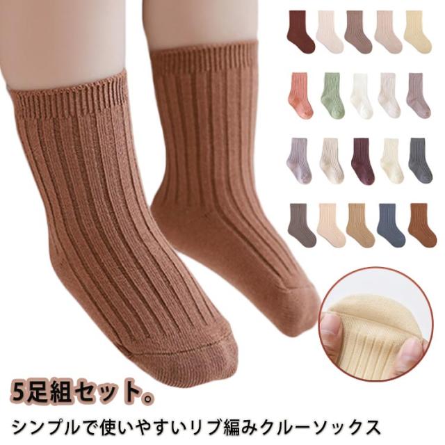 送料無料 クルーソックス キッズ 靴下 子供 女の子 男の子 リブソックス 5足組 コットンソックス ベビーソックス 幼児靴下 ショート丈 シンプル 無地 あったか 防寒 登園 通学 運動会 オールシーズンOK