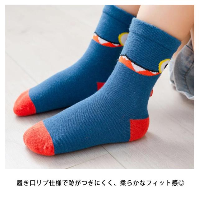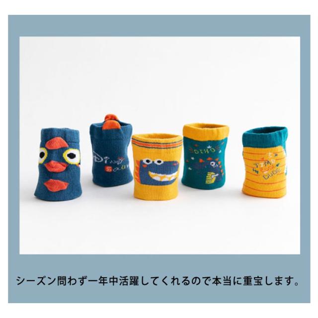 送料無料 5足組 靴下 キッズ ソックス 子供 クルーソックス 男の子 女の子 男児 女児 子ども ジュニア 恐竜 イラスト コットン 綿 通気 ショート丈 保育園 幼稚園 通園 通学 普段着 可愛い おしゃれ ギフト プレゼント