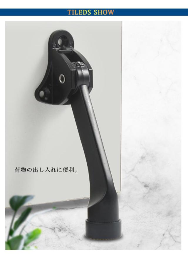 | 主婦に大人気!ドアをがっちり固定 荷物の出し入れに便利。 両手がふさがっている時も足で軽く押し下げるだけでOK! ちょっとすき間を開けるのも簡単。お部屋の喚起などにも便利! | |