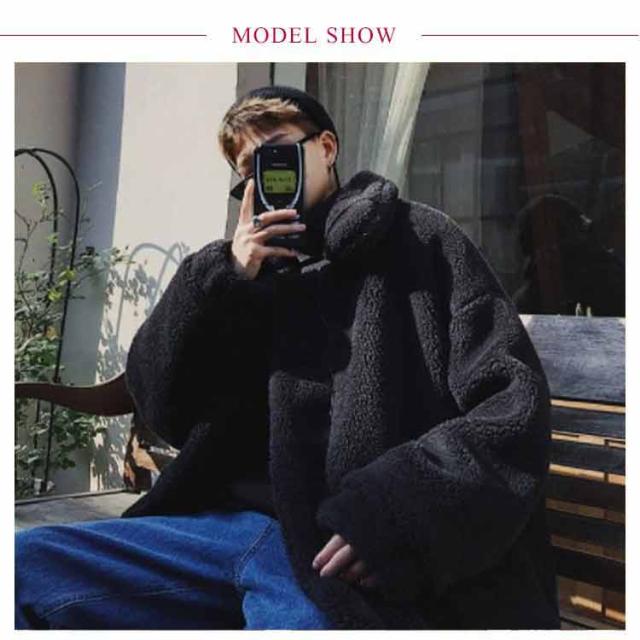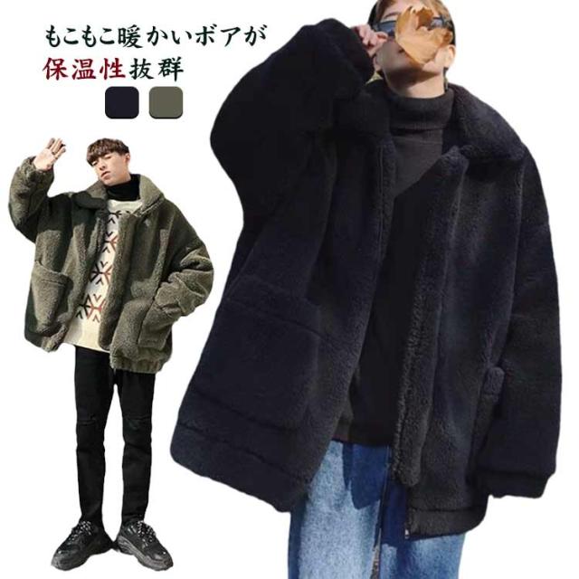 ボアコート ボア ジャケット メンズ ボアフリース アウター ハイネック ジップアップ ジャンバー ブルゾン カーディガン ショート丈 長袖 厚手 あったか ボアフリースジャケット ボリューム袖 ボア アウター 大人 オーバーサイズ