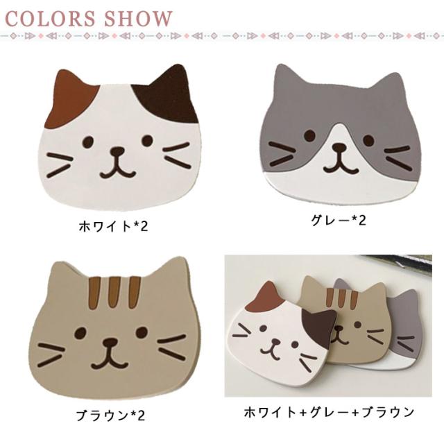 2枚セット グラス コースター アニマル かわいい 猫 ネコ 可愛い 滑り止め テーブル コップ敷き 2枚セット タンブラー マグカップ ティーカップ ギフト カフェ 雑貨 動物