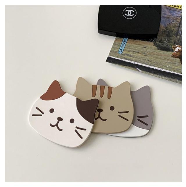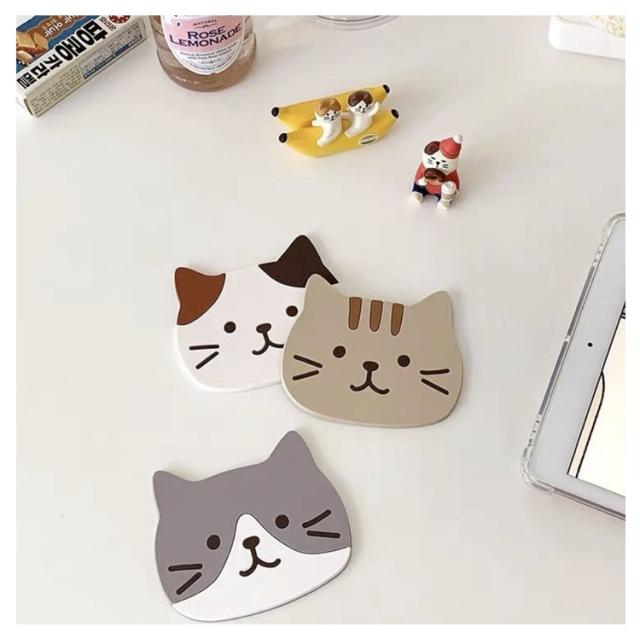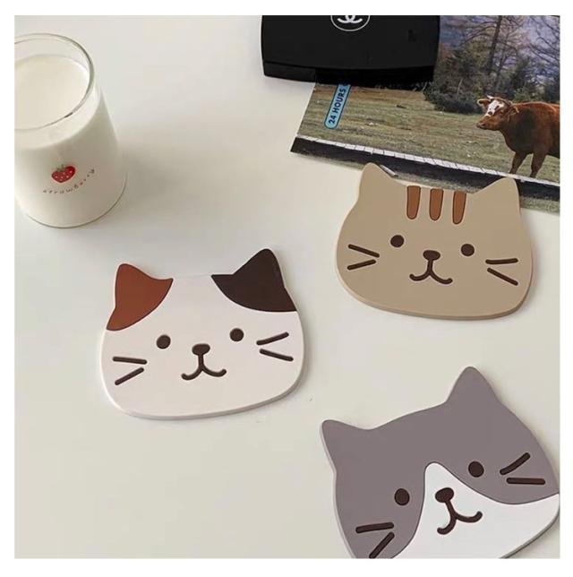 | とっても可愛いネコのコースターです。 シリコン製で水洗いOK。 冬はスープカップ、夏は冷たいジュースやビールで日々の食卓をにぎやかにします。 | |