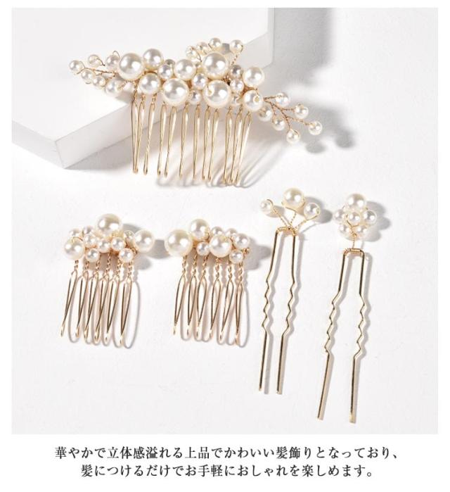 パール 髪飾り 結婚式 ヘアアクセサリー 5点セット(4色) お呼ばれ ヘッドドレス ヘアピン Uピン かんざし 和装 留袖 浴衣 ウェディング ゲスト パールピン ショート 卒業式 入学式 成人式 和装 着物 ボブ 子供 花 キッズ 色留袖 黒留袖