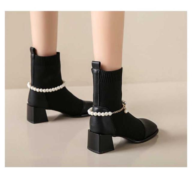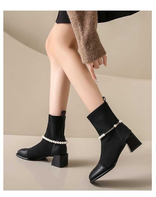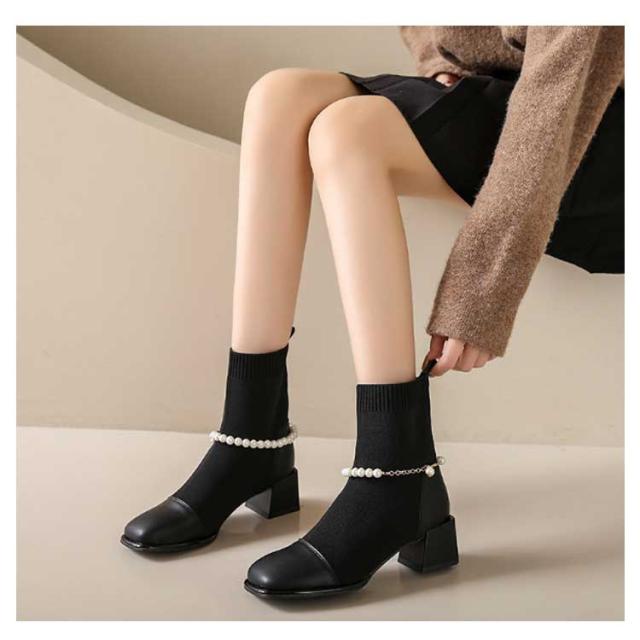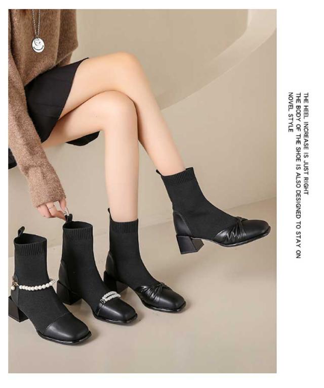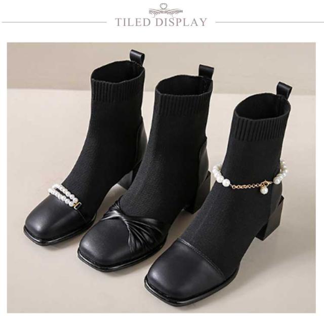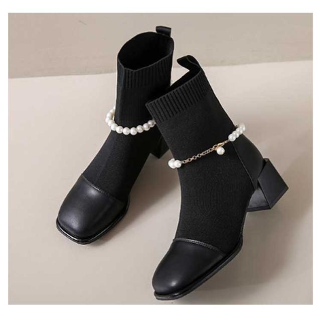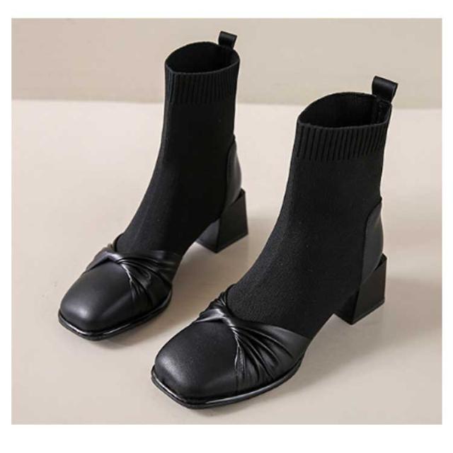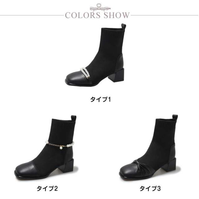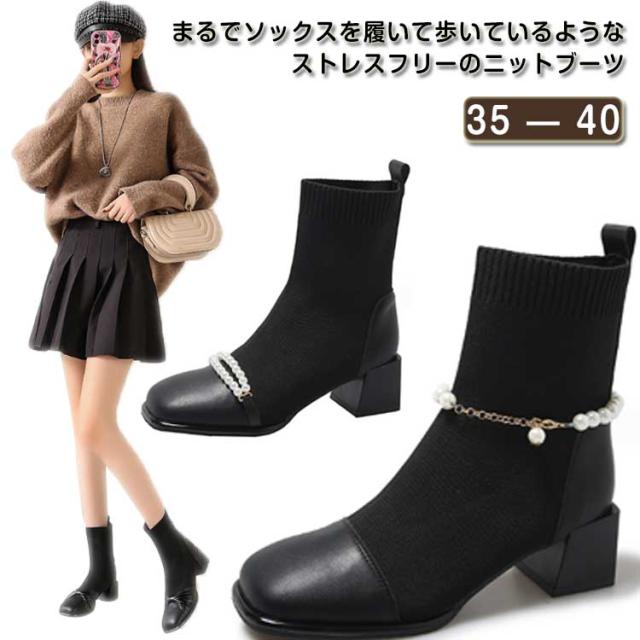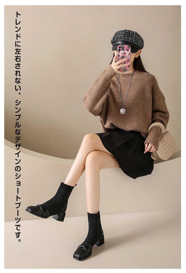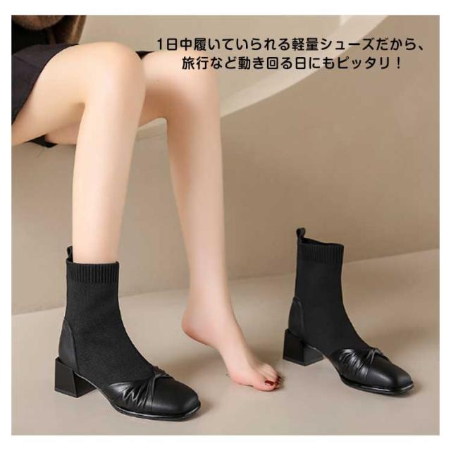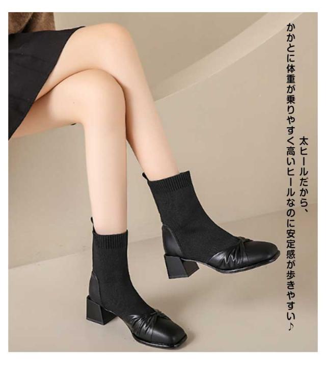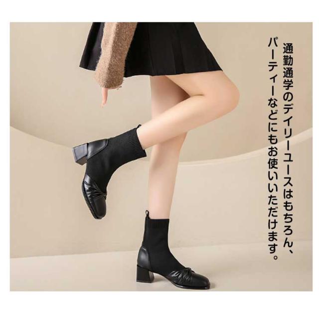 ショートブーツ ニットソックスブーツ アンクルブーツ レディース 楽ちん 秋冬 きれいめ チャンキーヒール 疲れない ストレッチ リブニット 太ヒール 美脚 ヒール 定番 大人カジュアル ソックスブーツ