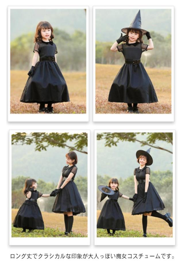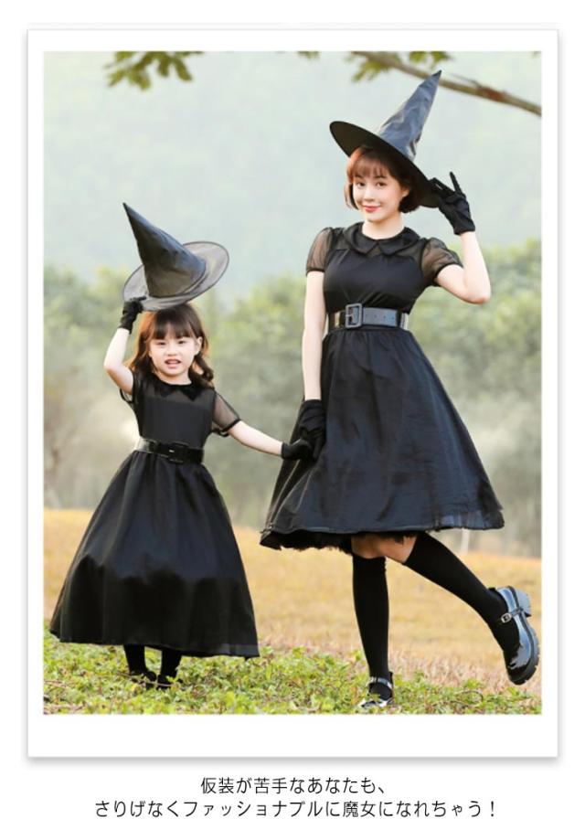 ハロウィン コスプレ 4点セット レディース 子供 女の子 魔女 ワンピース 帽子 手袋 ベルト 仮装 コスチューム 衣装 子供 大人 イベント お揃い プレゼント おもしろ おばけ 可愛い コスプレ衣装 コスプレ仮装