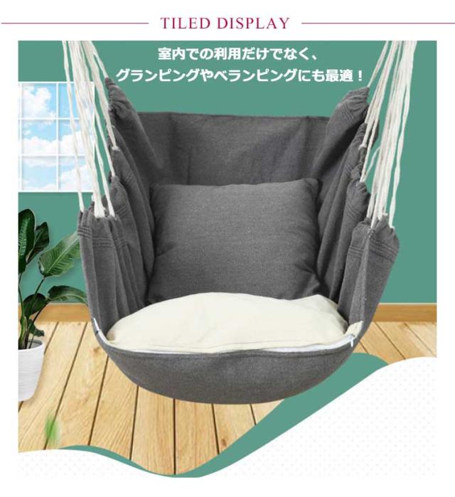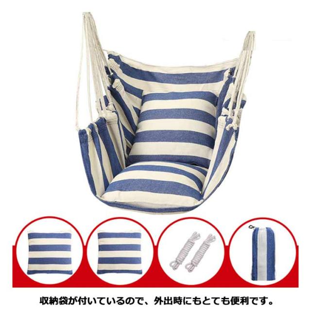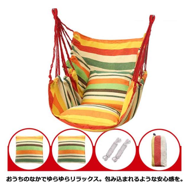 | サイズについての説明 | ハンモックチェア:約130cm×100cm、耐荷重:200kg、枕:38*38cm |