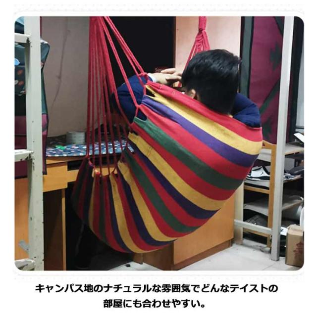 吊り下げハンモック 室内 屋外 ベランピング グランピング ゆらゆら ハンモック チェア 吊り下げ式 吊り式ハンモック ハンモックチェア ハンモックネット ハンギングチェアー アウトドア キャンパス地 ナチュラル キャンプ 便利 インテリア
